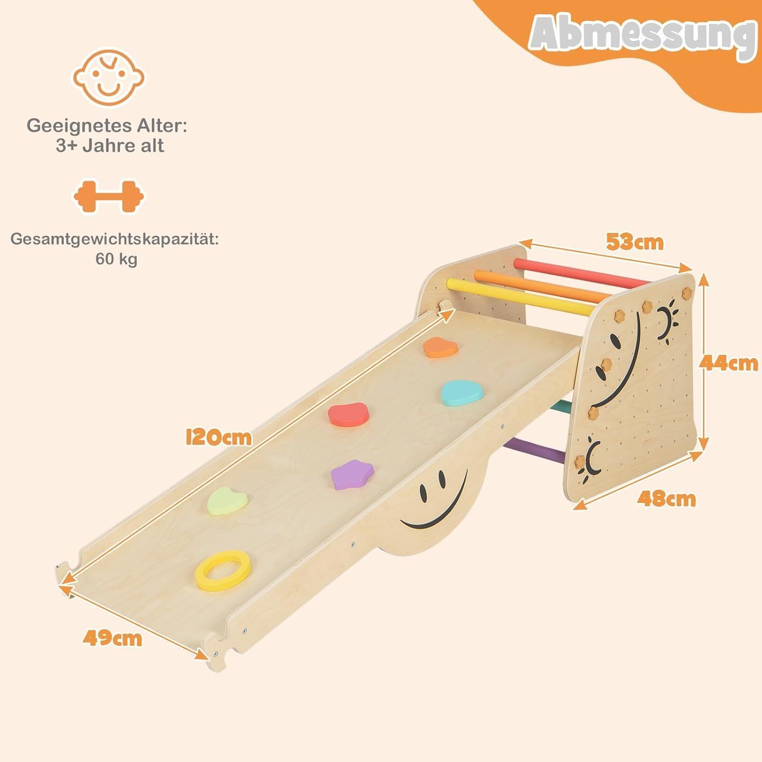 in 1 Klettergeräst Indoor, Kletterdreieck mit Rutsche, Indoor Spielplatz für Kinder