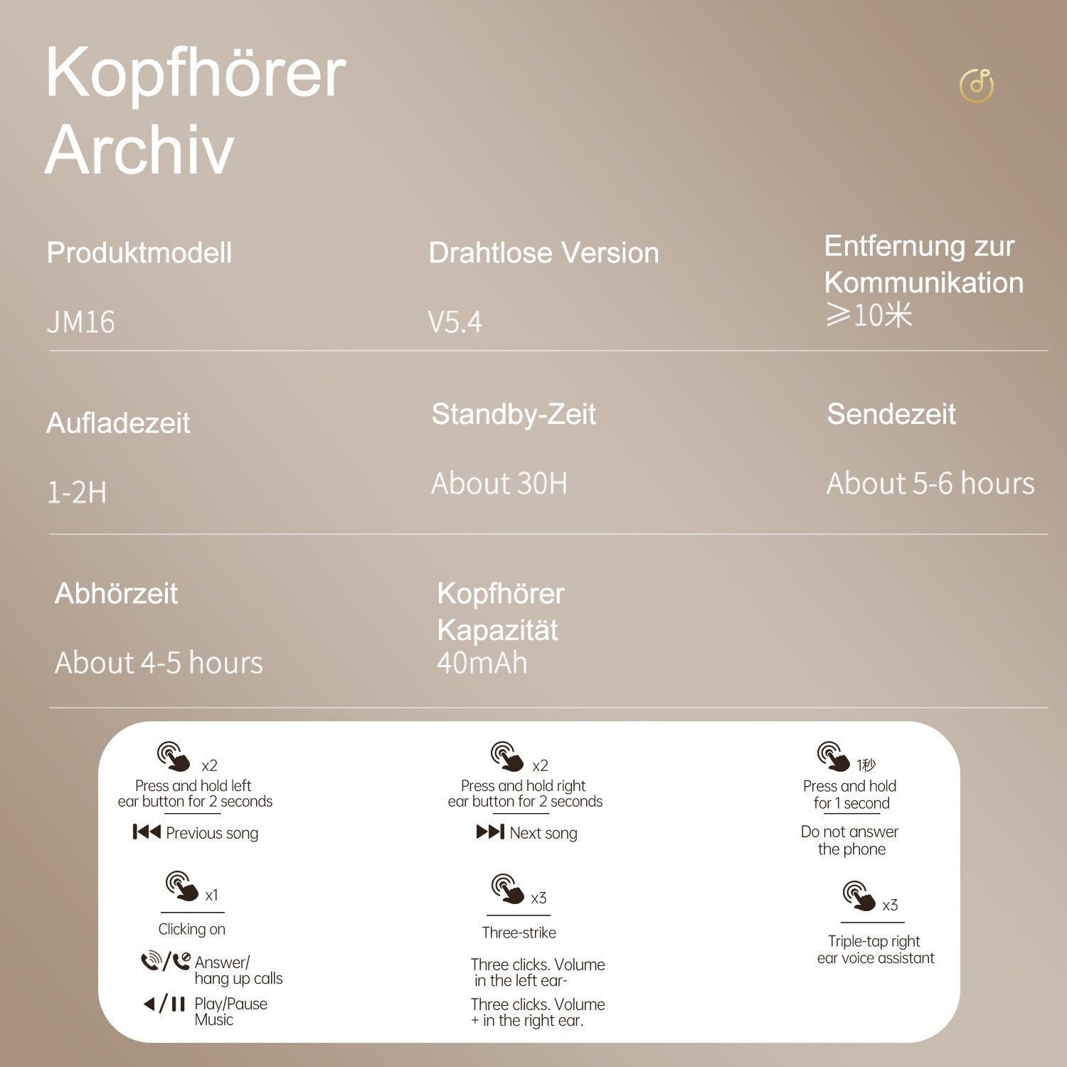 In Ear Kopfhörer Bluetooth 5.4 Sport-Kopfhörer, it Touchscreen Open-Ear-Kopfhörer