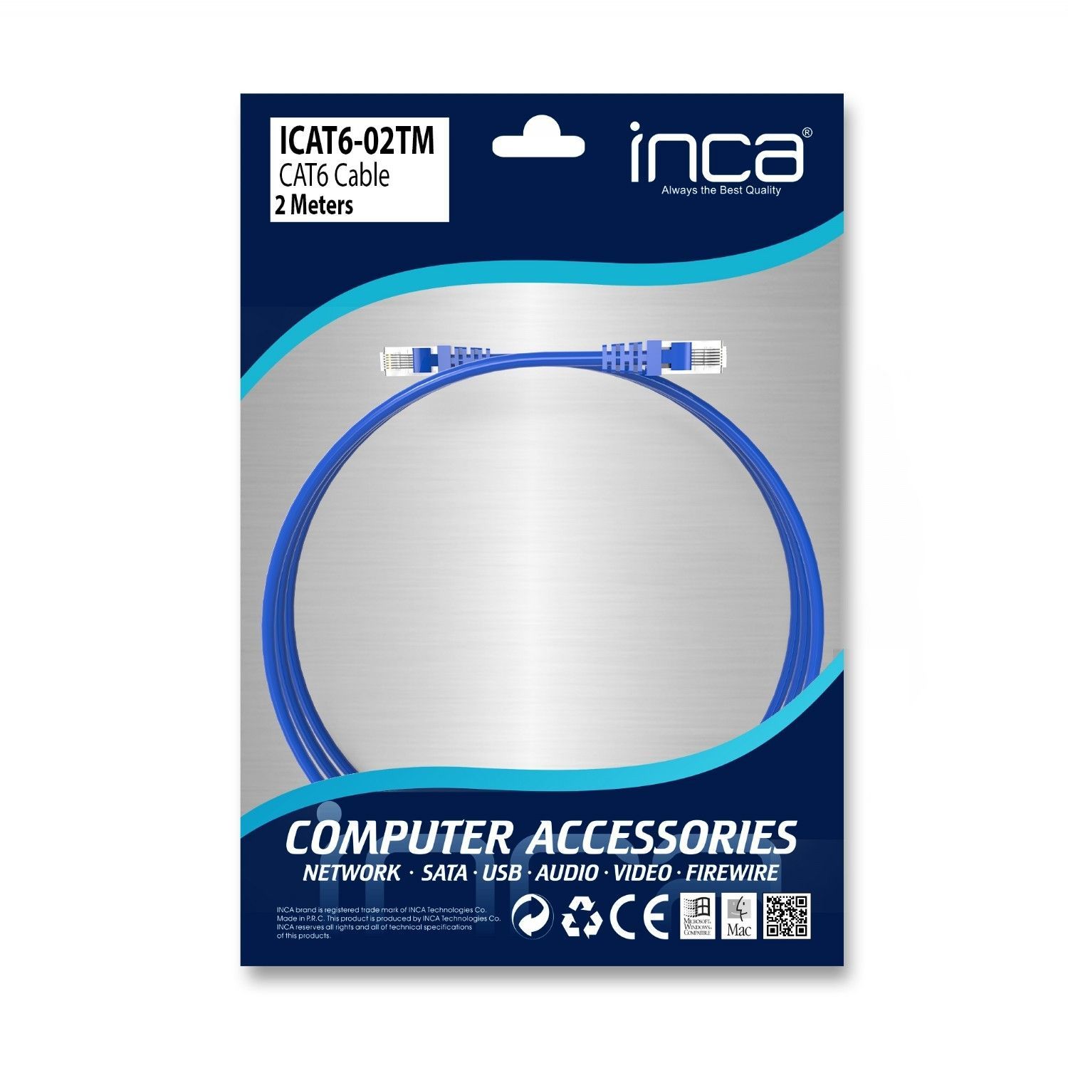 Inca ICAT6-02TM RJ45 Cat6 UTP Netzwerkkabel Ethernetkabel LAN-Kabel Blau 2 Meter