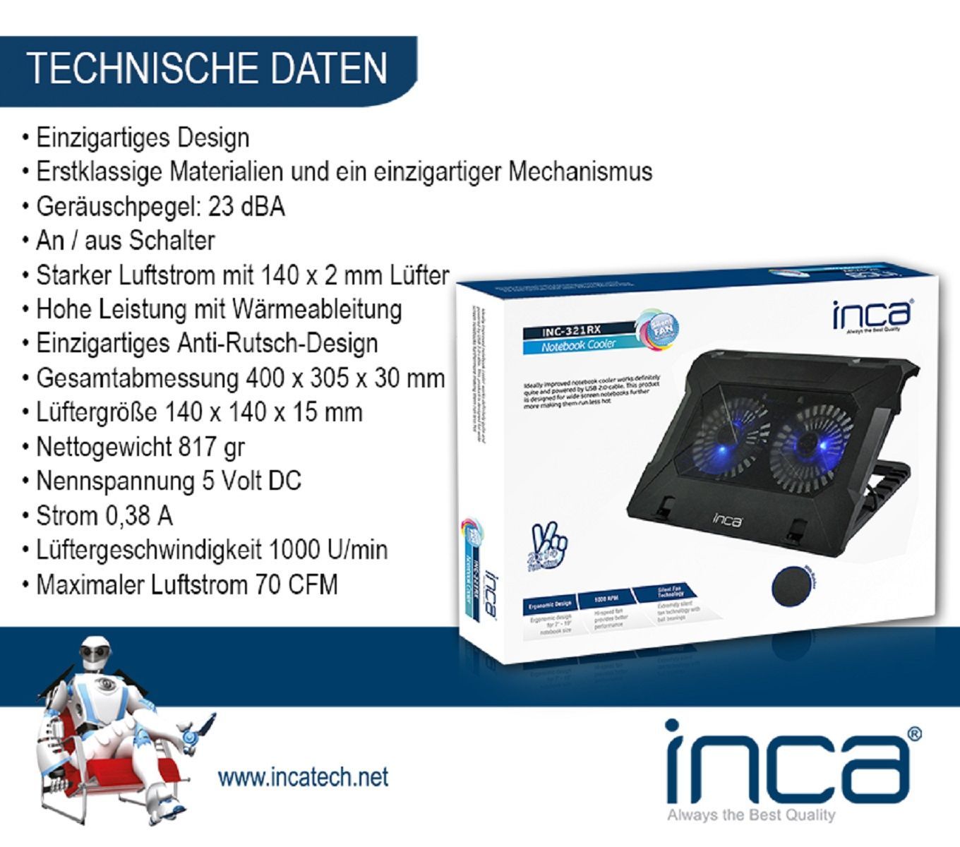 INCA INC-321RX Laptopkühler Notebookkühler geeignet für 7-17-Zoll-Laptops 2x140mm