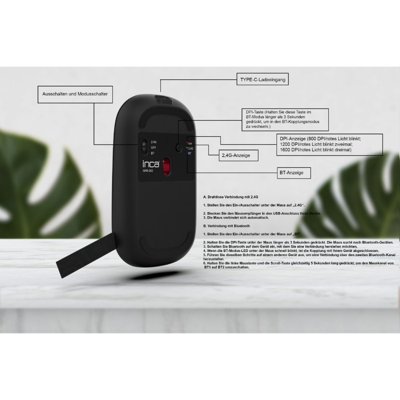 Inca IWM-242S Dual-Bluetooth 5.4 & 2.4G Kabellose Silent Maus