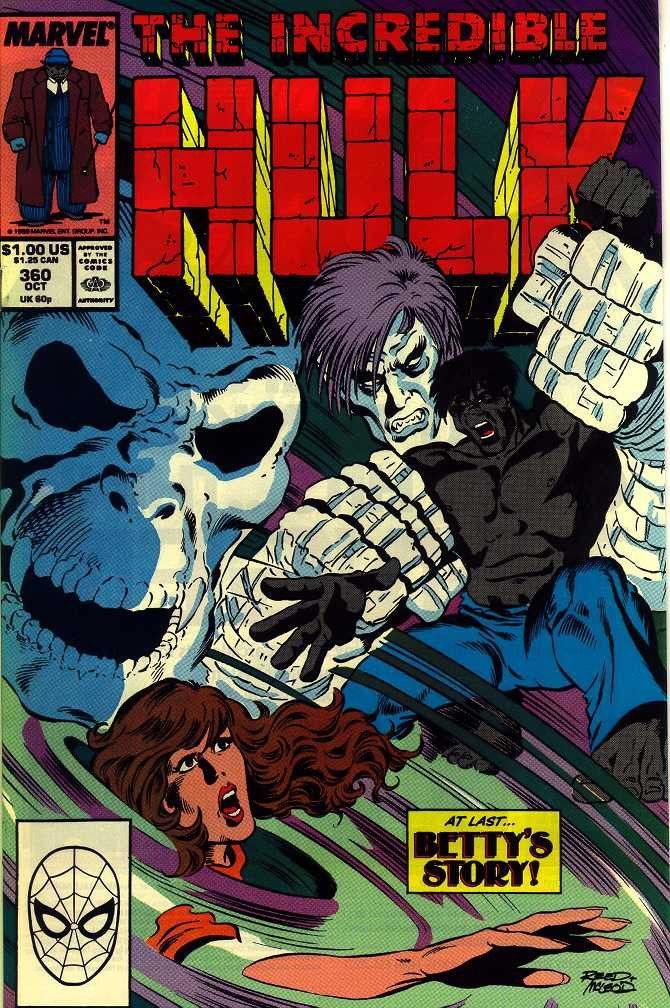 Incredible Hulk 360 Verlag * publisher : Marvel Comics USA Erscheinungsjahr * year of issue: 1989 (Copper Age) Seitenzahl * number or pages: 32 Texter * writer: Bob Harras Zeichner * artists (pencils inks): Dan Reed Marie Severin schwarz-weiß oder Farbe * bw or colour: colour Hinweise zum Inhalt * n