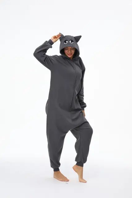 Damen Cheshire Cat One-Piece Hooded Pyjama Cosplay Kostüm Winter Schlafanzug