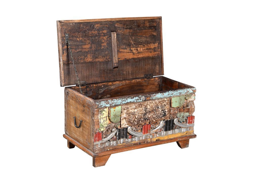 India kleine Antikholz Truhe Kassette Box Sitzpodest Couchtisch bunt b