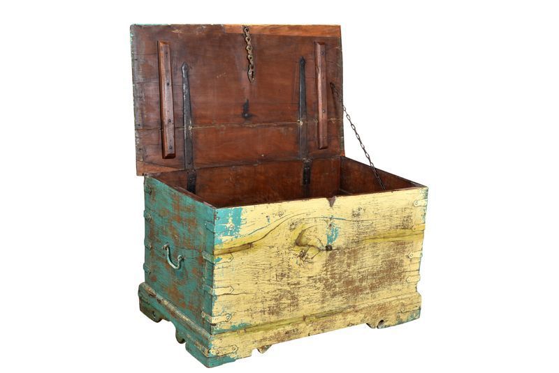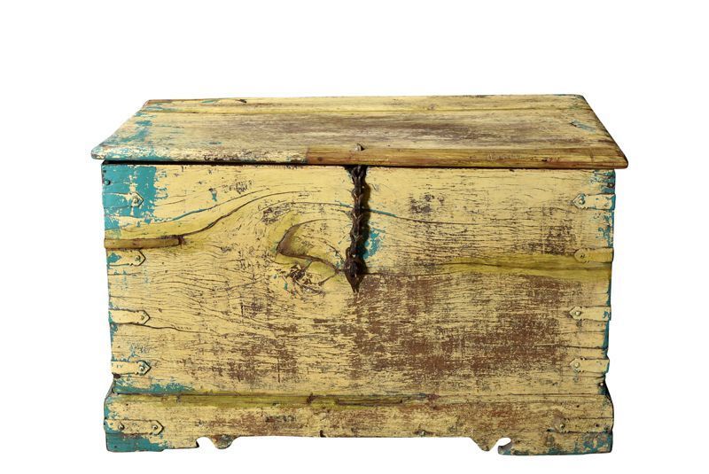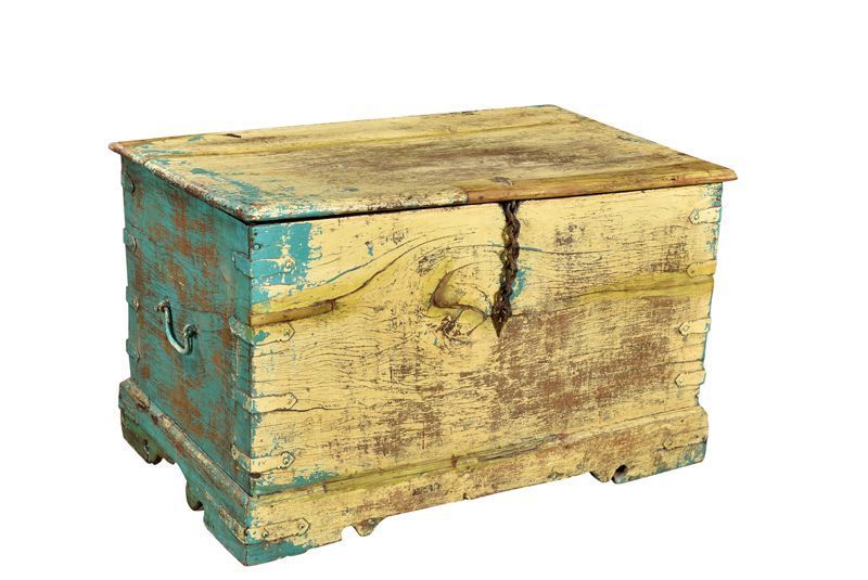 India typische rustikale Truhe hell lackiert Abnutzungsspuren Rajastha