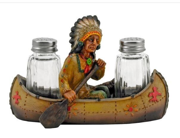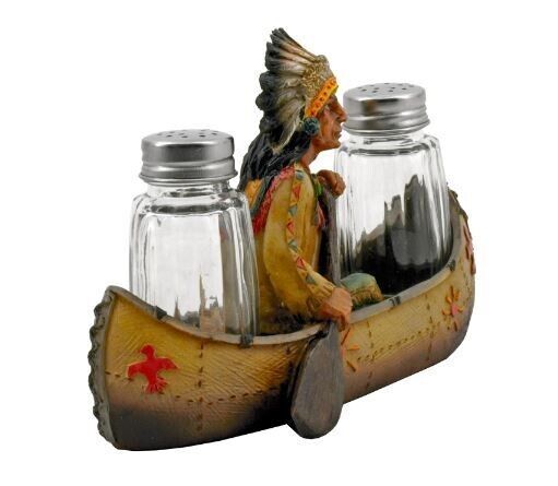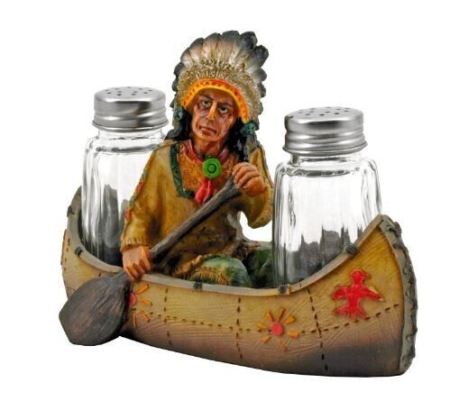 Indian Chief im Kanu - Salz und Pfeffer Set - Wild West - Western Style