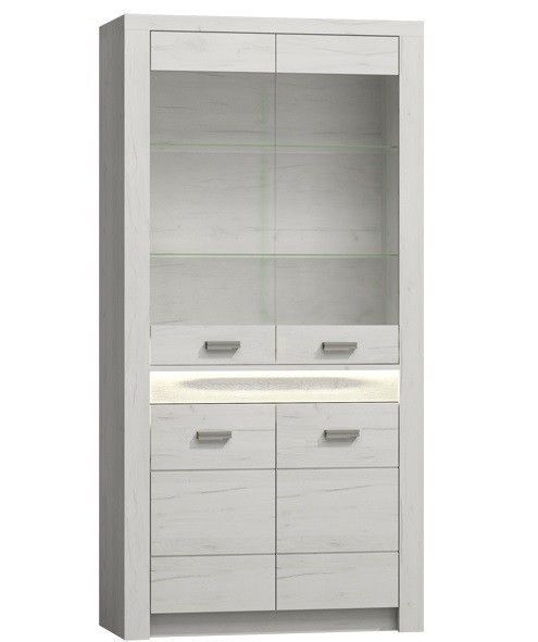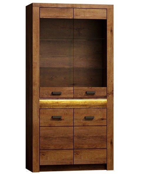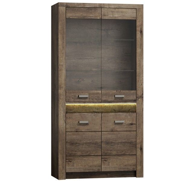 Indiana I -3 - Hohe Vitrine mit Zwei Glasregalen und einem Schrank, Wohnzimmer