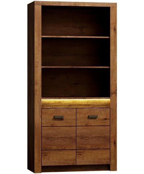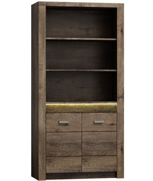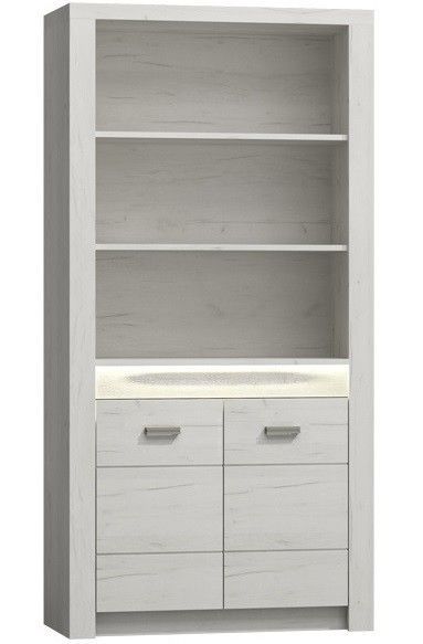 Marmex Indiana I5 - Bücherregal für Bücher, Ornamente oder Dokumente mit einem Schrank darunter; auf dem Bücherregal gibt es zwei Regale, eines darunter; für das Wohnzimmer, Wohnzimmer oder Schlafzimmer Farbe: Esche hell Esche dunkel Kraft weiß Maße: Breite: 96 cm Höhe: 192 cm Tiefe: 42 cm Ausführun