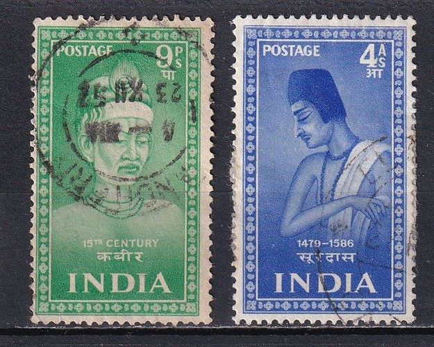 Indien, 1952, Mi. 221, 224, Dichter/ Mystiker, 2 Briefm., gest