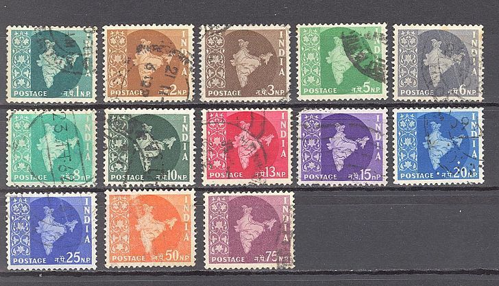 Indien, 1957, Mi. 259-271, 13 Briefm., gest