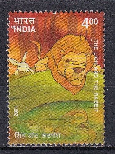 Indien, 2001, Löwe und Kaninchen, 1 Briefm., gest