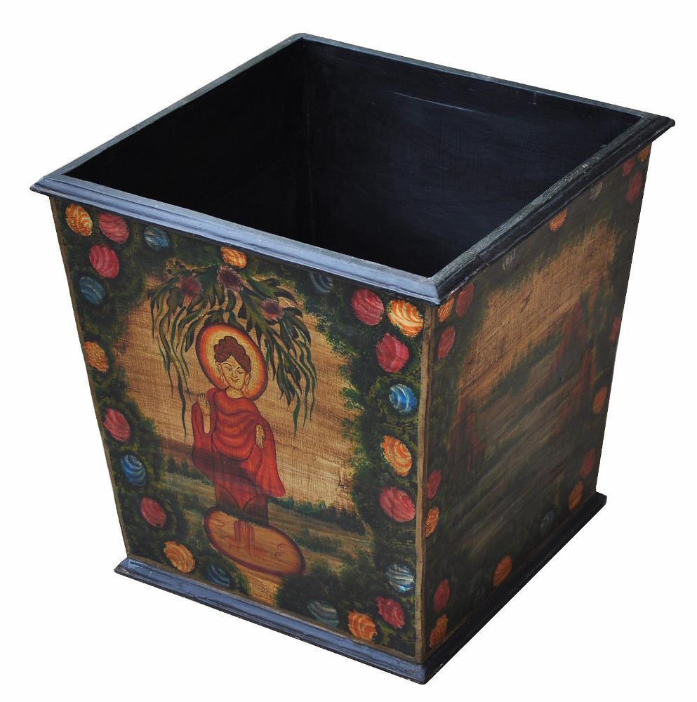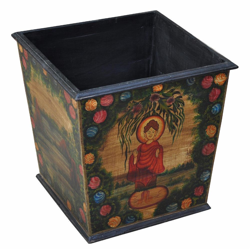 Indien bemalte Pflanzschale Blumenkuebel Massivholz