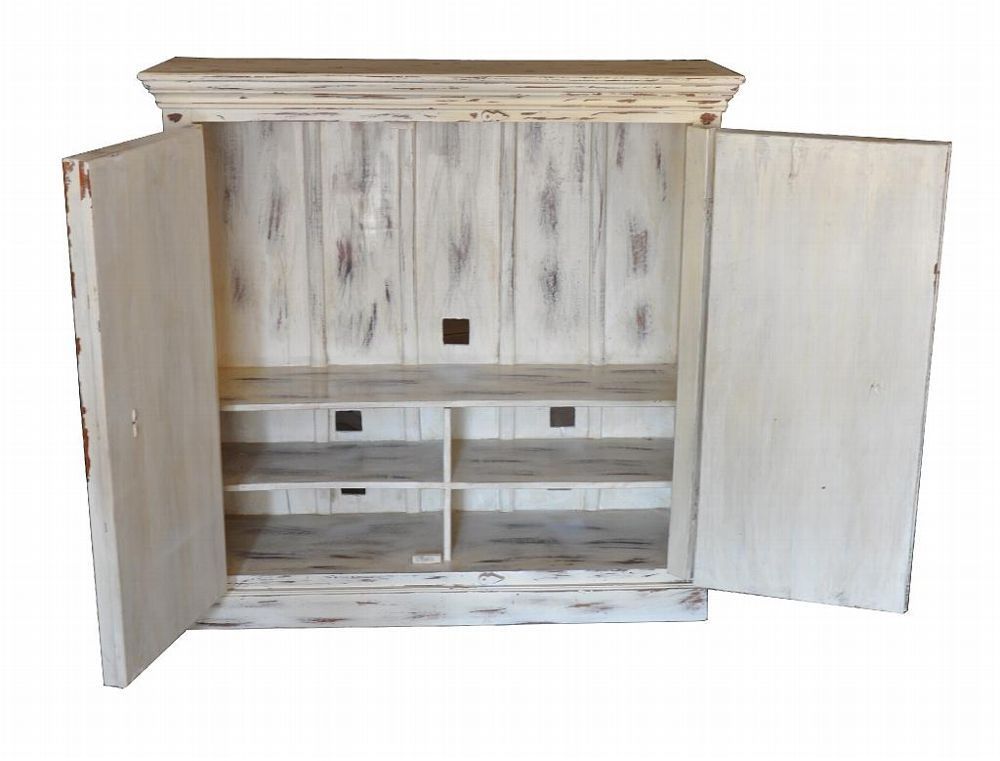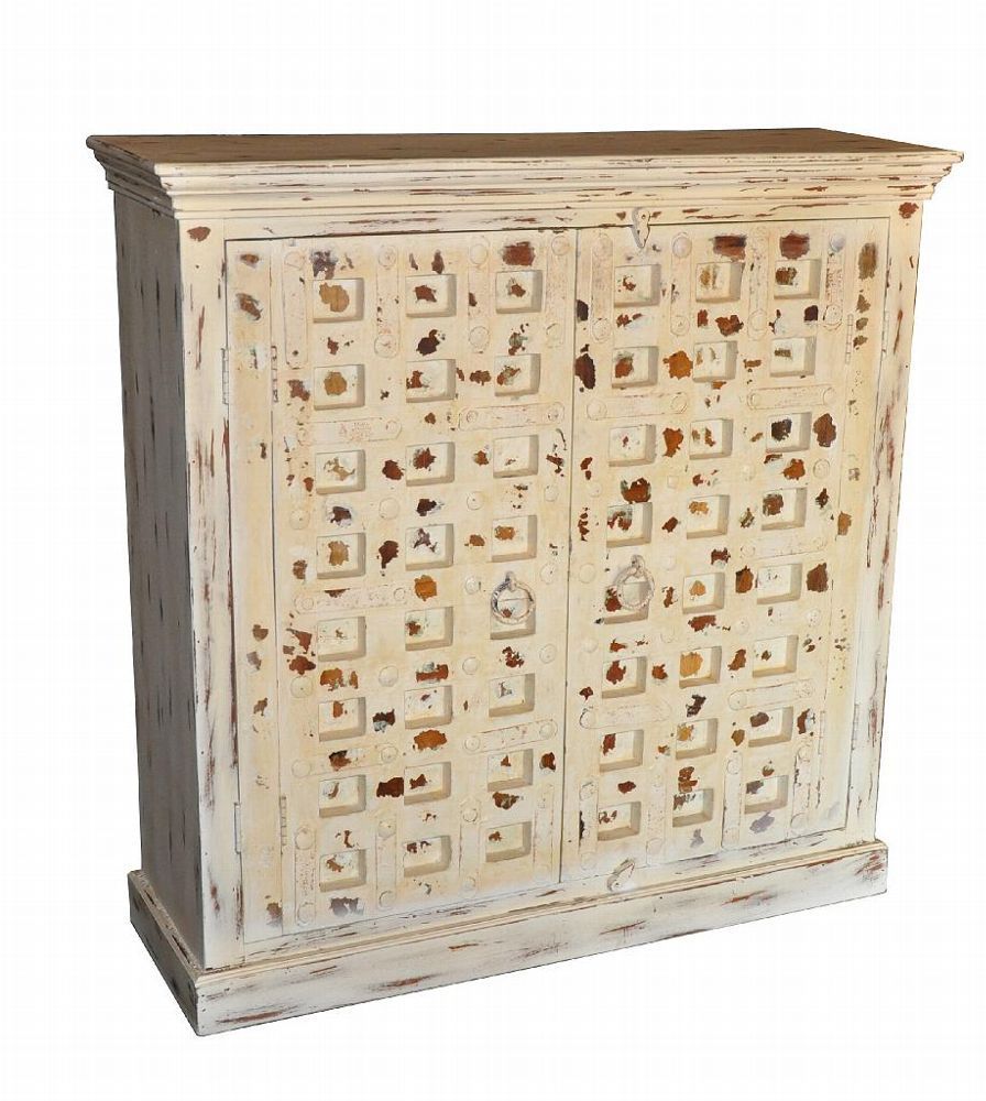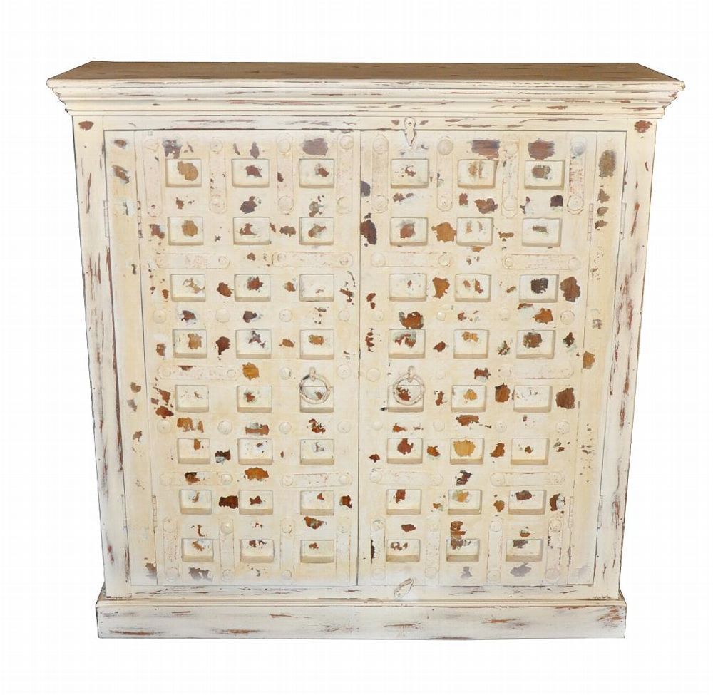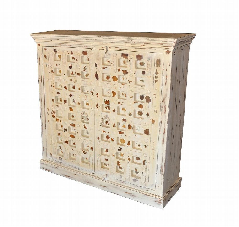 Indien breite quadratische Kommode fuer TV Bildschirm beige bemalt