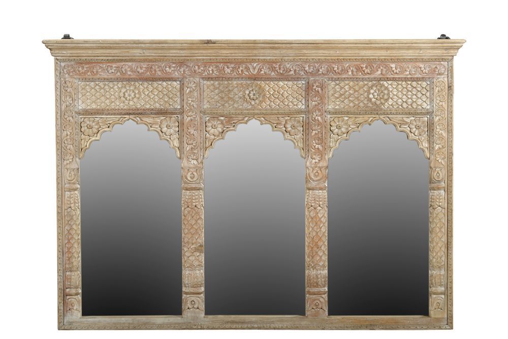Indien breiter Spiegel heller Holzrahmen gefertigt von antikem Fenster