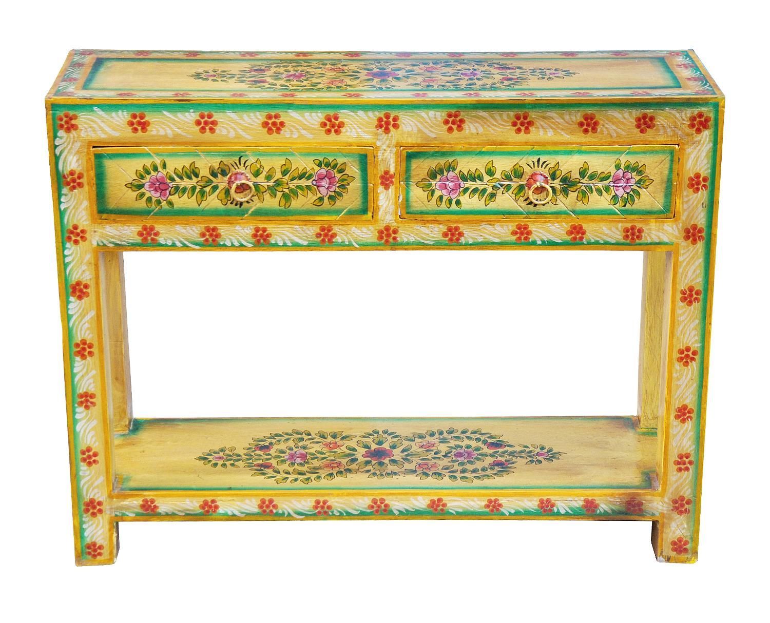 Indien grénlich bemalte kleine Anrichte âEuroEuro Rustikale Kommode. Ein Meisterwerk der indischen Handwerkskunst. Diese rustikale kleine Anrichte bringt mit ihrer grénlichen Bemalung und dem robusten Design ein Stéck indischen Charme in Ihr Zuhause.. Exquisites Design in Naturholzfarben. Die grénli