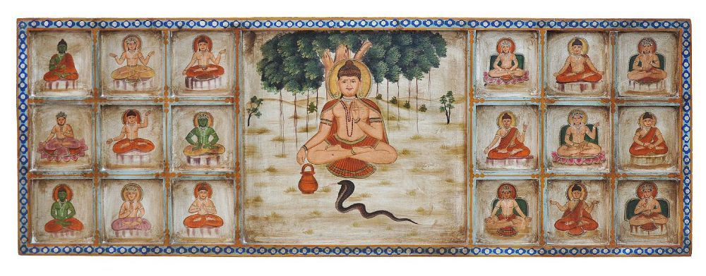 Indien besonders breites Wandbild mit traditionellen religioesen Motiven