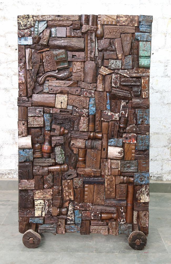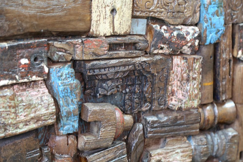Indien massiver Raumteiler Teak VI-ED-023 antike Bruchstuecke