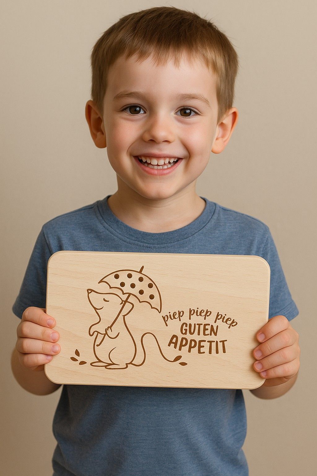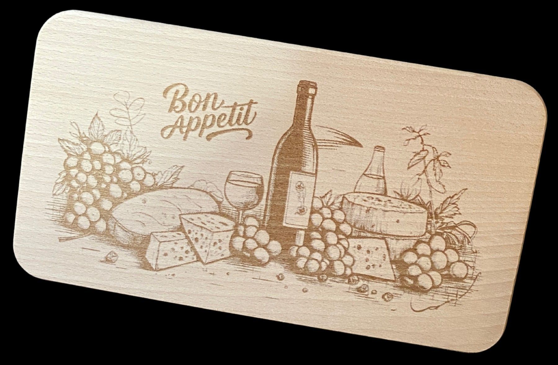 Individuell graviertes Brotzeitbrett aus Buchenholz - 22,5 x 12,5 cm