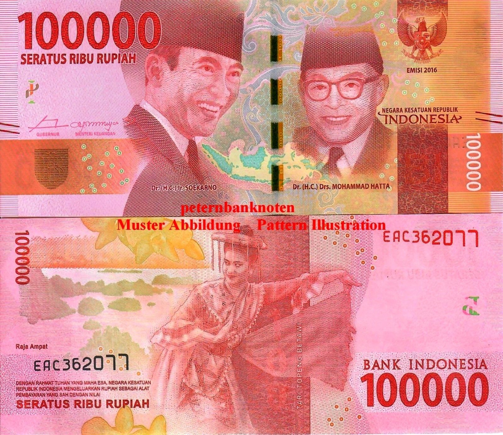 Indonesien 100.000 Rupees 2016 Unc. P. 160a 61195#
