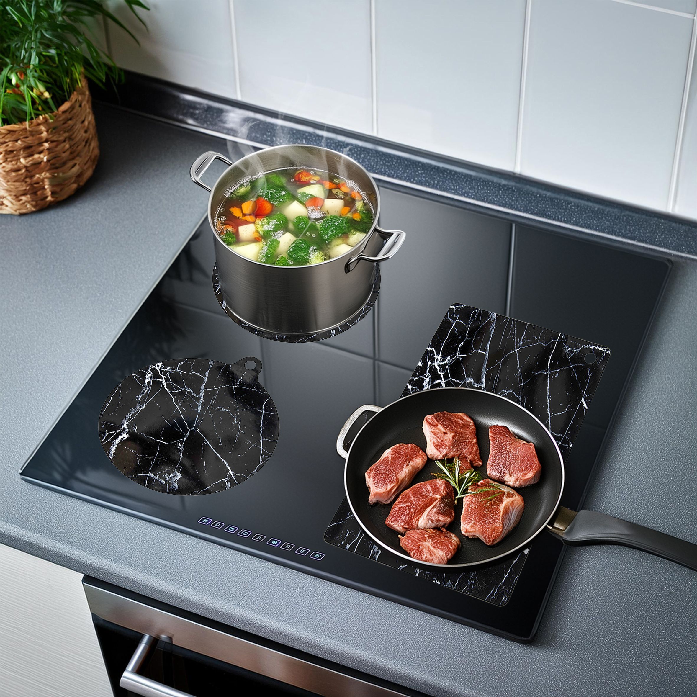 5-teiliges Induktions Schutz Set mit rutschfesten und bis 240° hitzebeständigen Silikonmatten in 3 verschiedene Größen