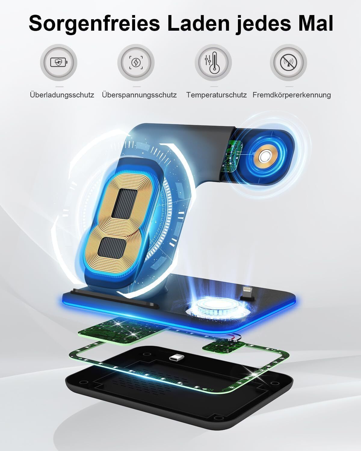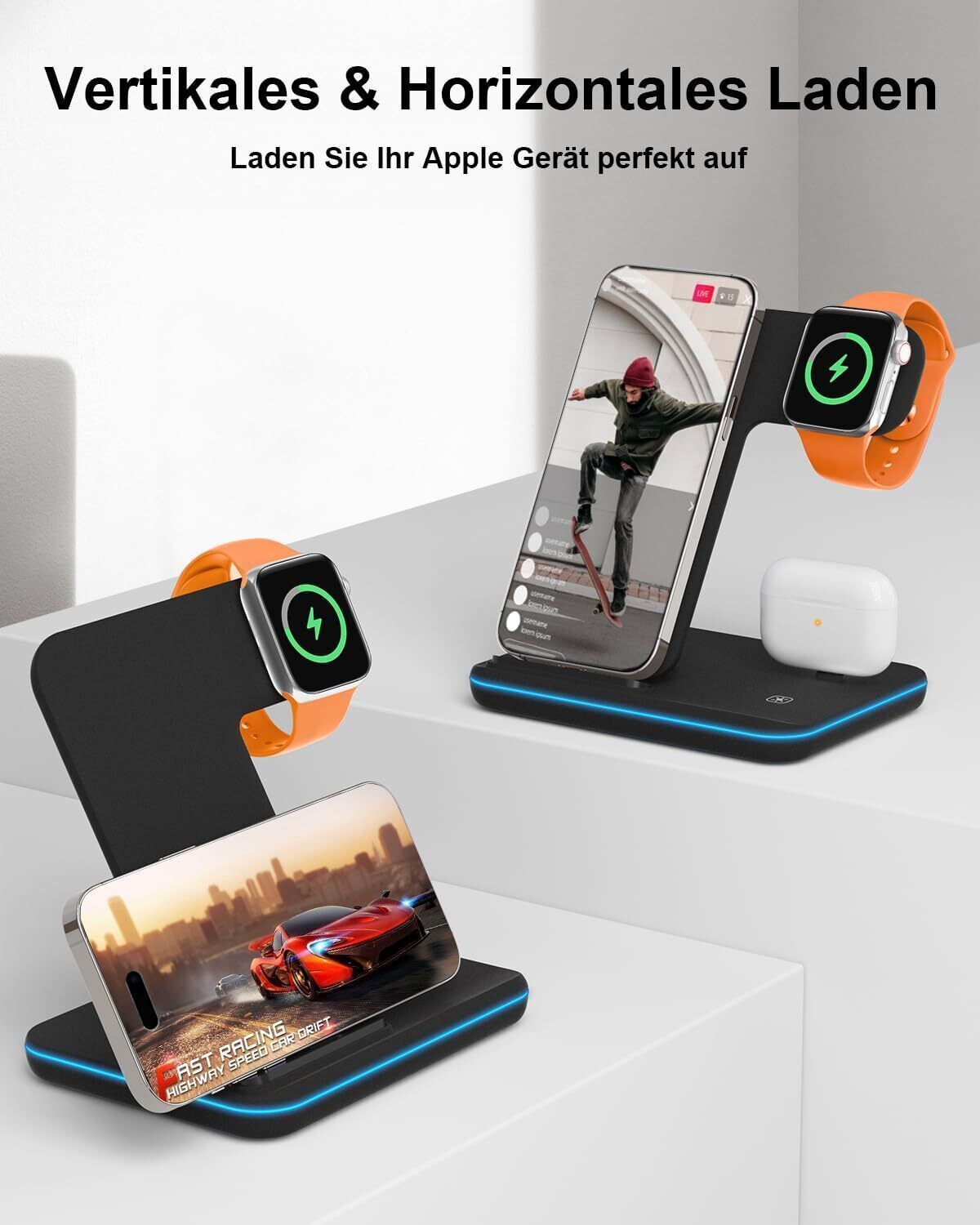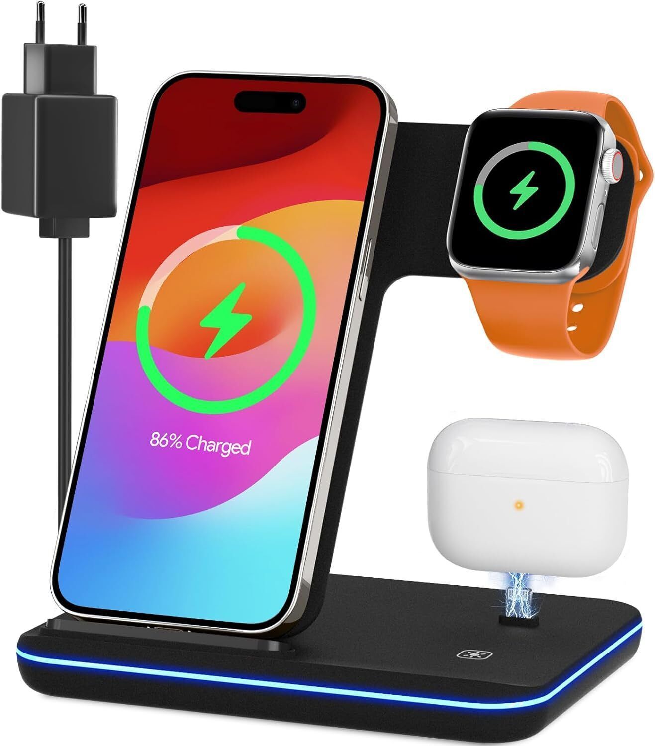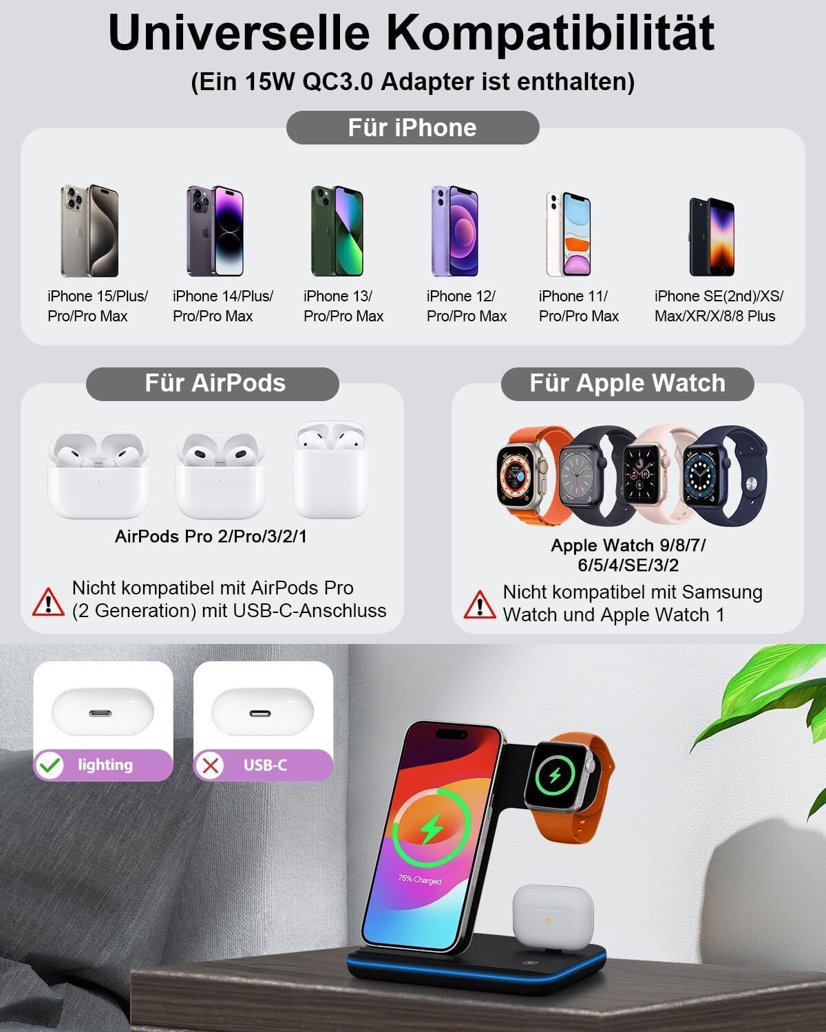 Induktive Ladestation fér Apple Wireless Charger 3 in 1 : 2024 Neu Kabelloses