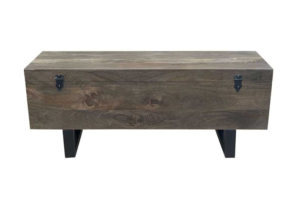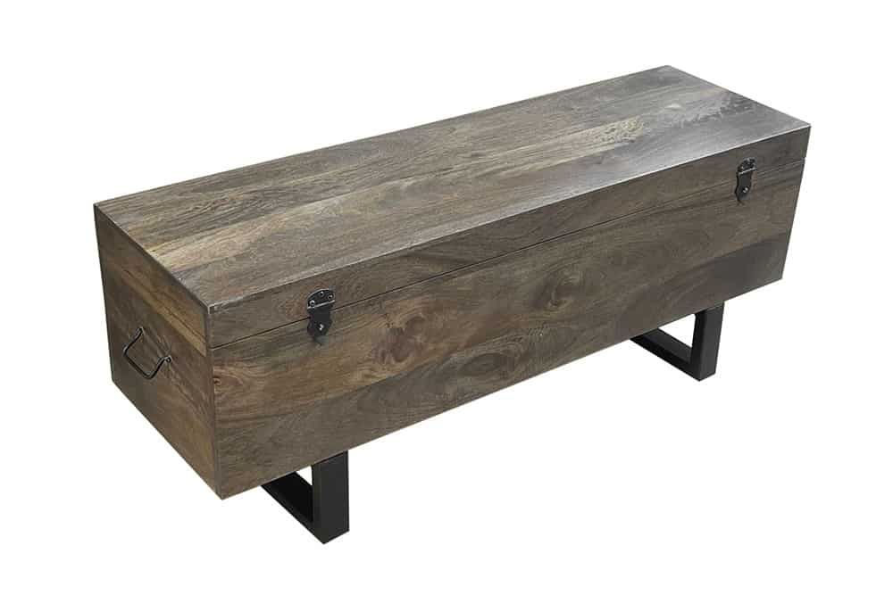 Industrial Couchtisch Fabrica 115cm braun Mangoholz Truhe Metallgestell schwarz