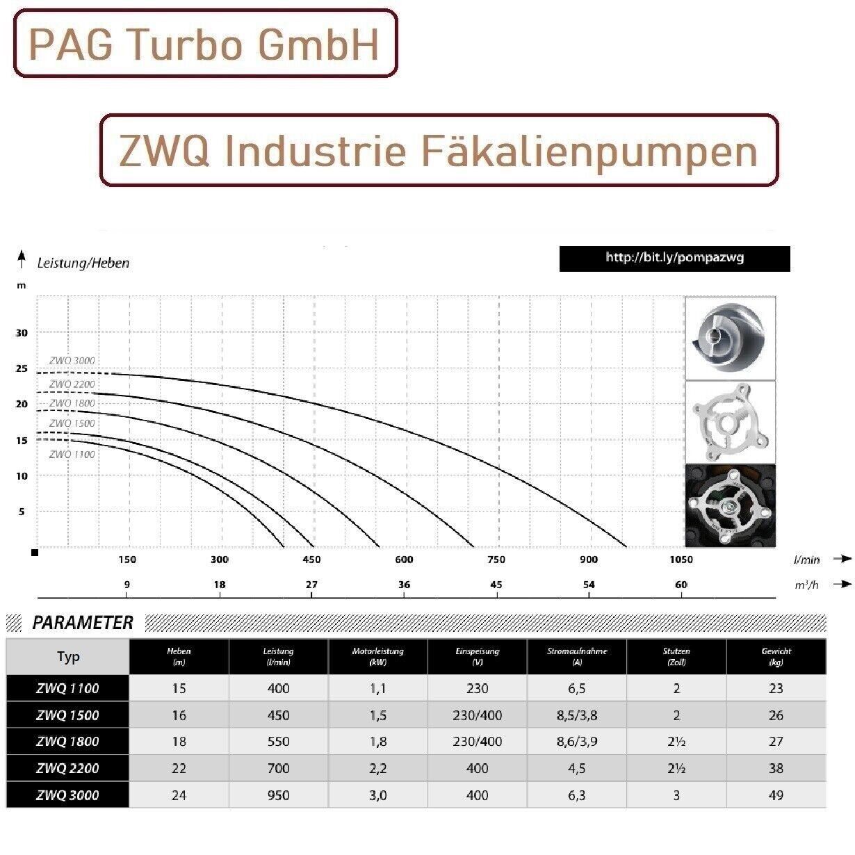 Industrie Fäkalienpumpe Schmutzwasserpumpe mit Cutter 3kW - 400 Volt - 54000L/h