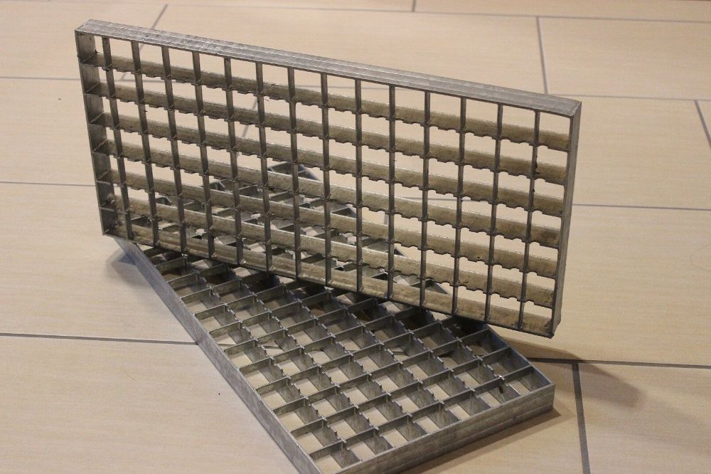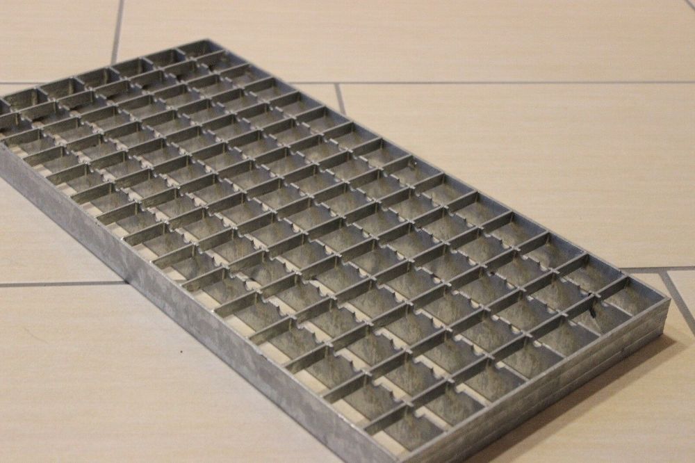 1 Gitterrost 500x240mm rutschhemmend, im Vollbad feuerverzinkt. Wichtig!!! erstgenannter Maß ist die Tragstabrichtung, beide Tragstabenden müssen aufliegen Maschenweite 30x30 mm mit Flacheisen-Einfassung Gesamthöhe 30 mm Tragstab 30x2 mm Jede Kreuzung tragend durch Stab-in-stab-Pressung Belastungswe