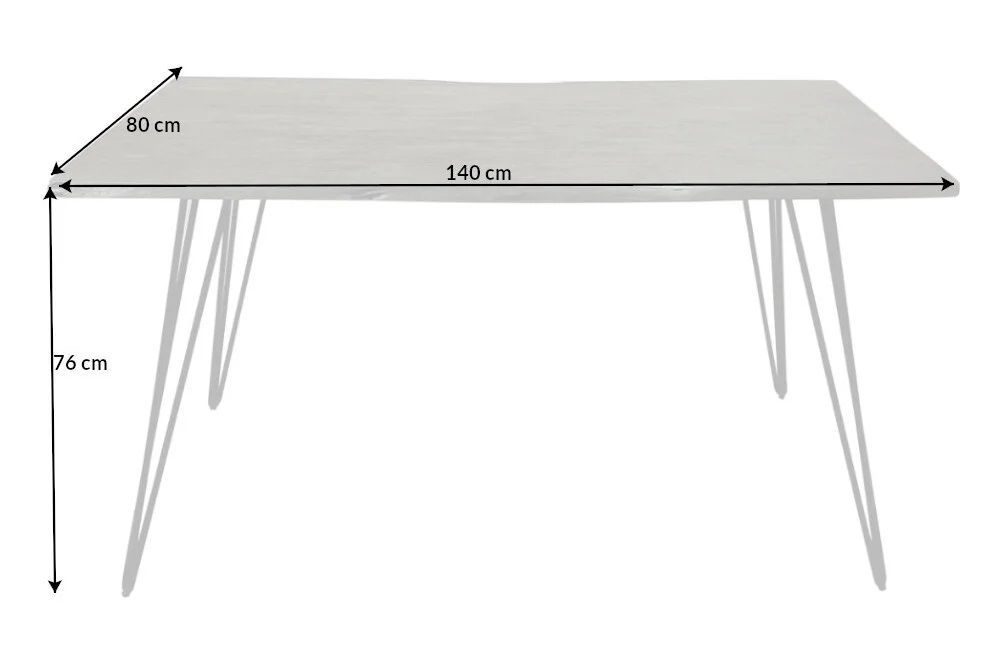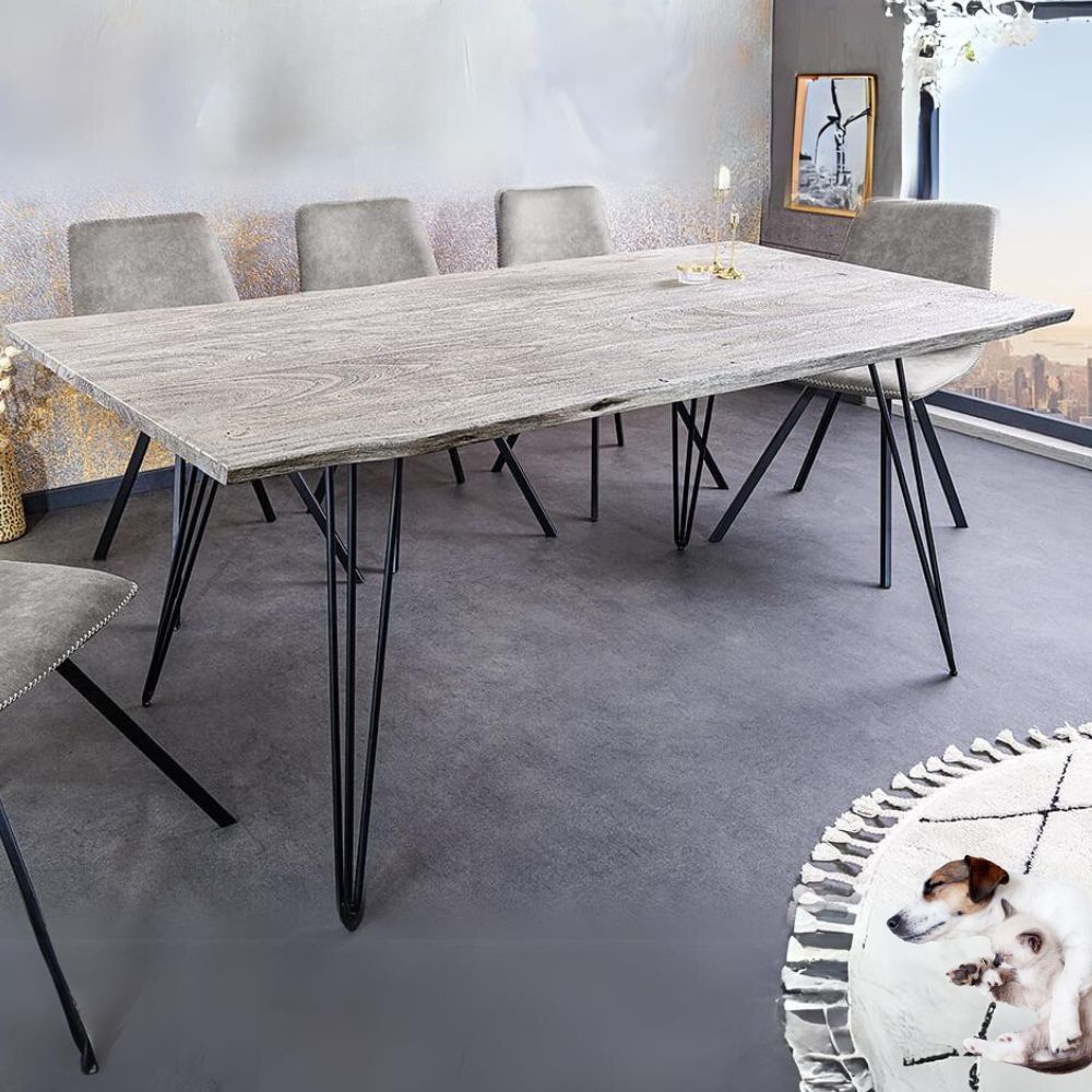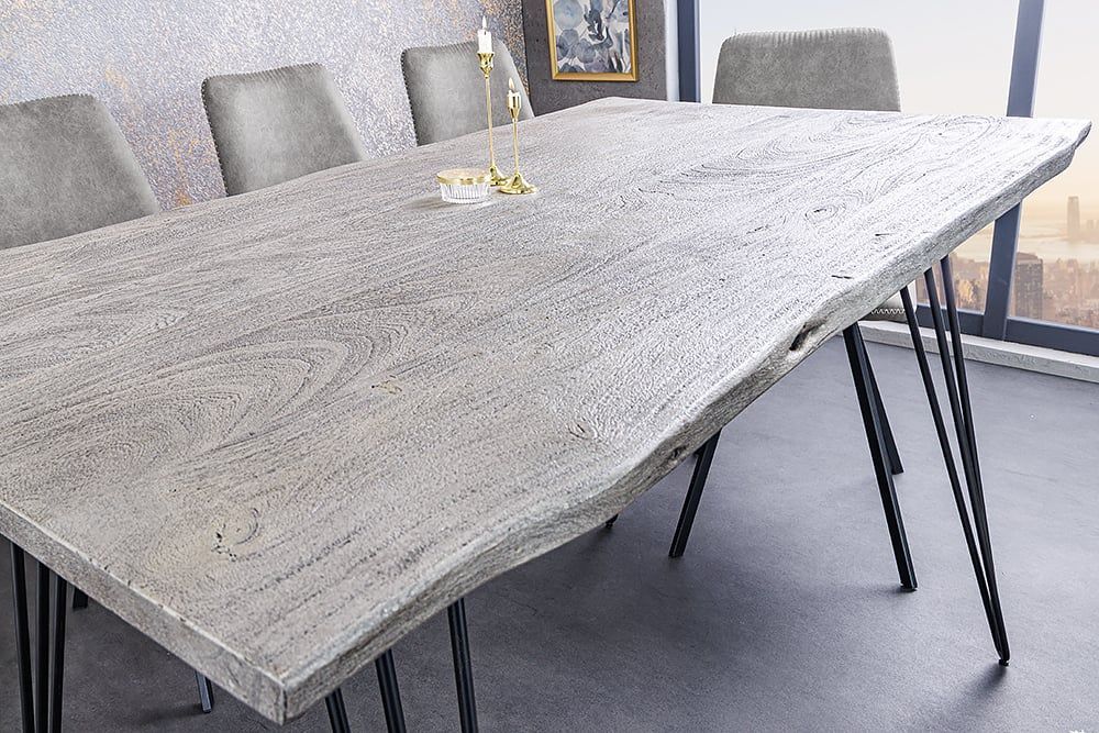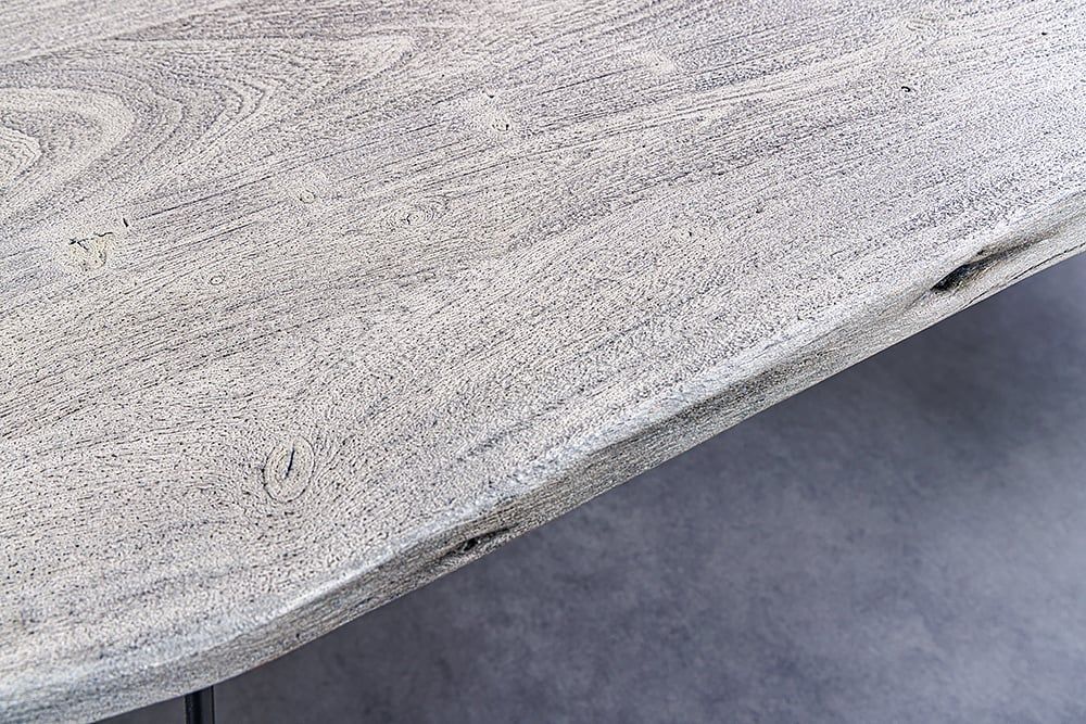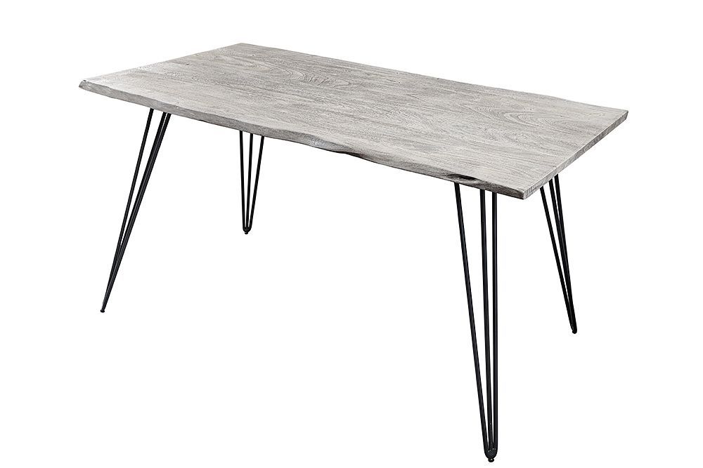 Industrie-Look Esstisch ALINA 140cm grau Akazie Baumkante Metallbeine