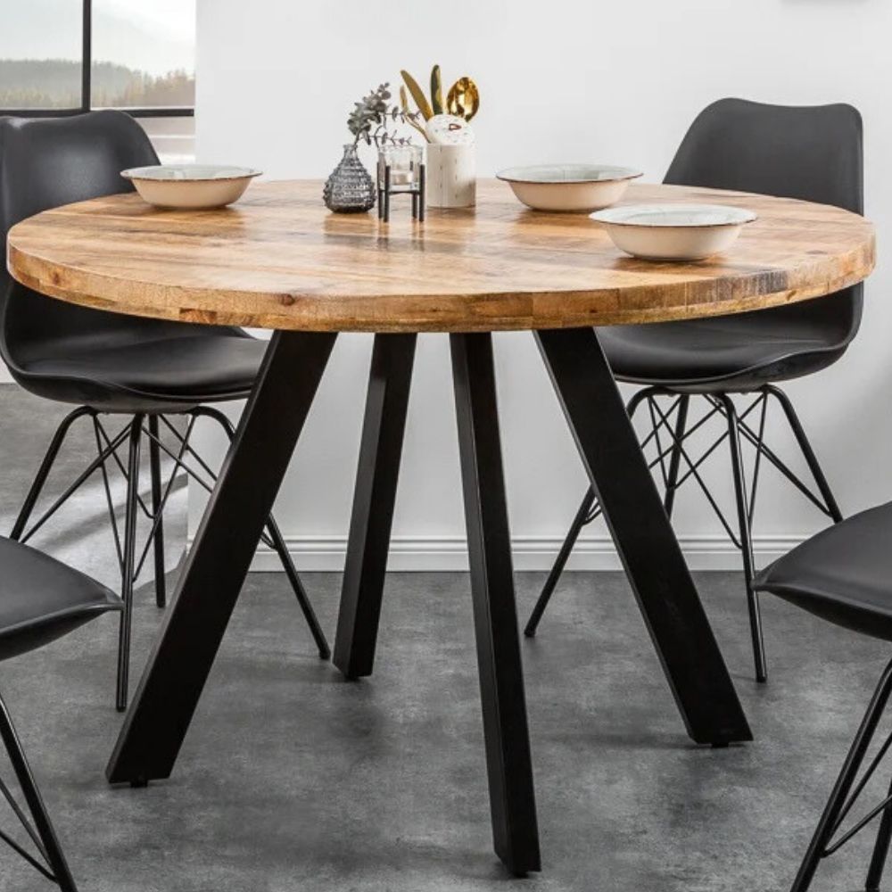 Industrie-Look Esstisch ARTE 120cm rund Mangoholz natural Metallbeine