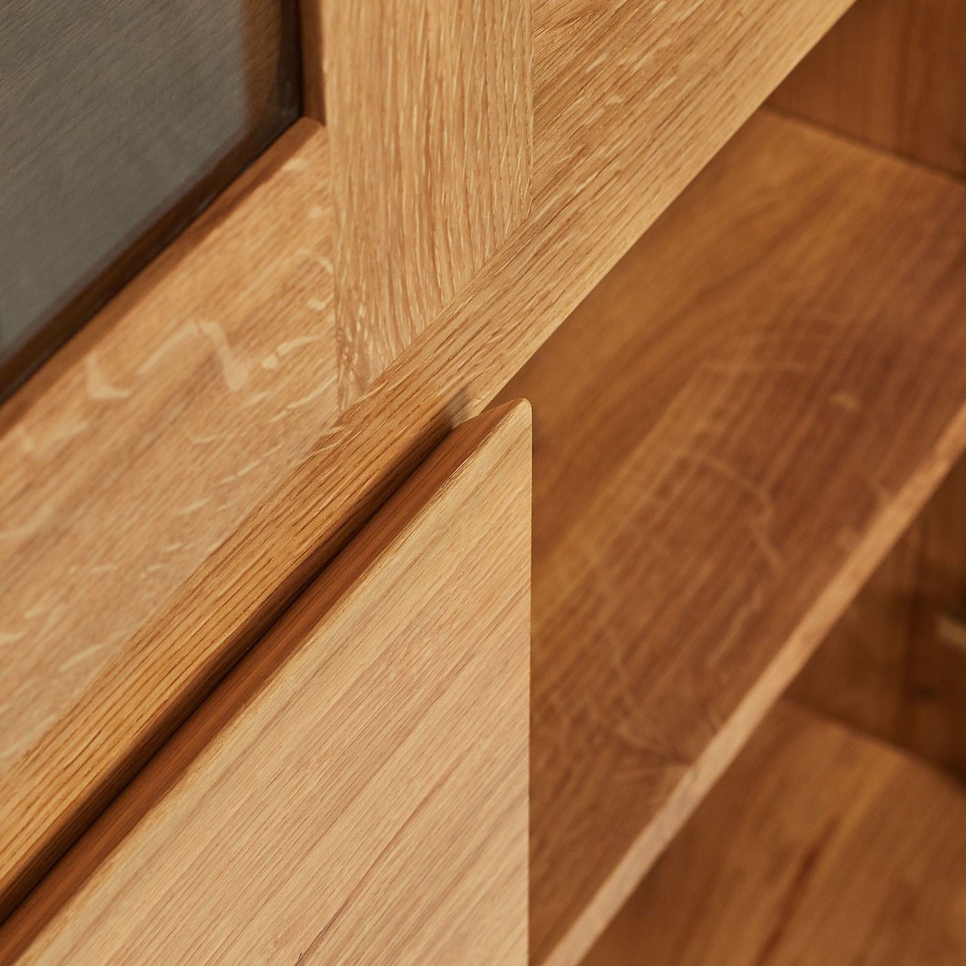 Industrielle Horizon-Vitrine, Massivholz Eiche