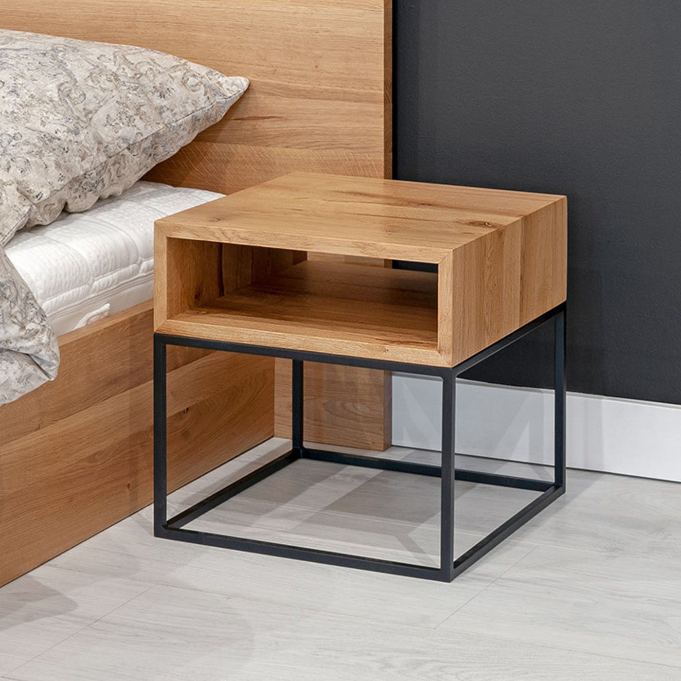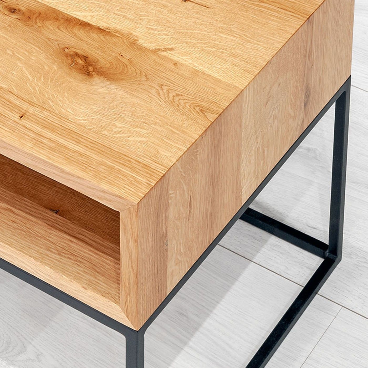 Industrieller Loom-Nachttisch, Massivholz Eiche