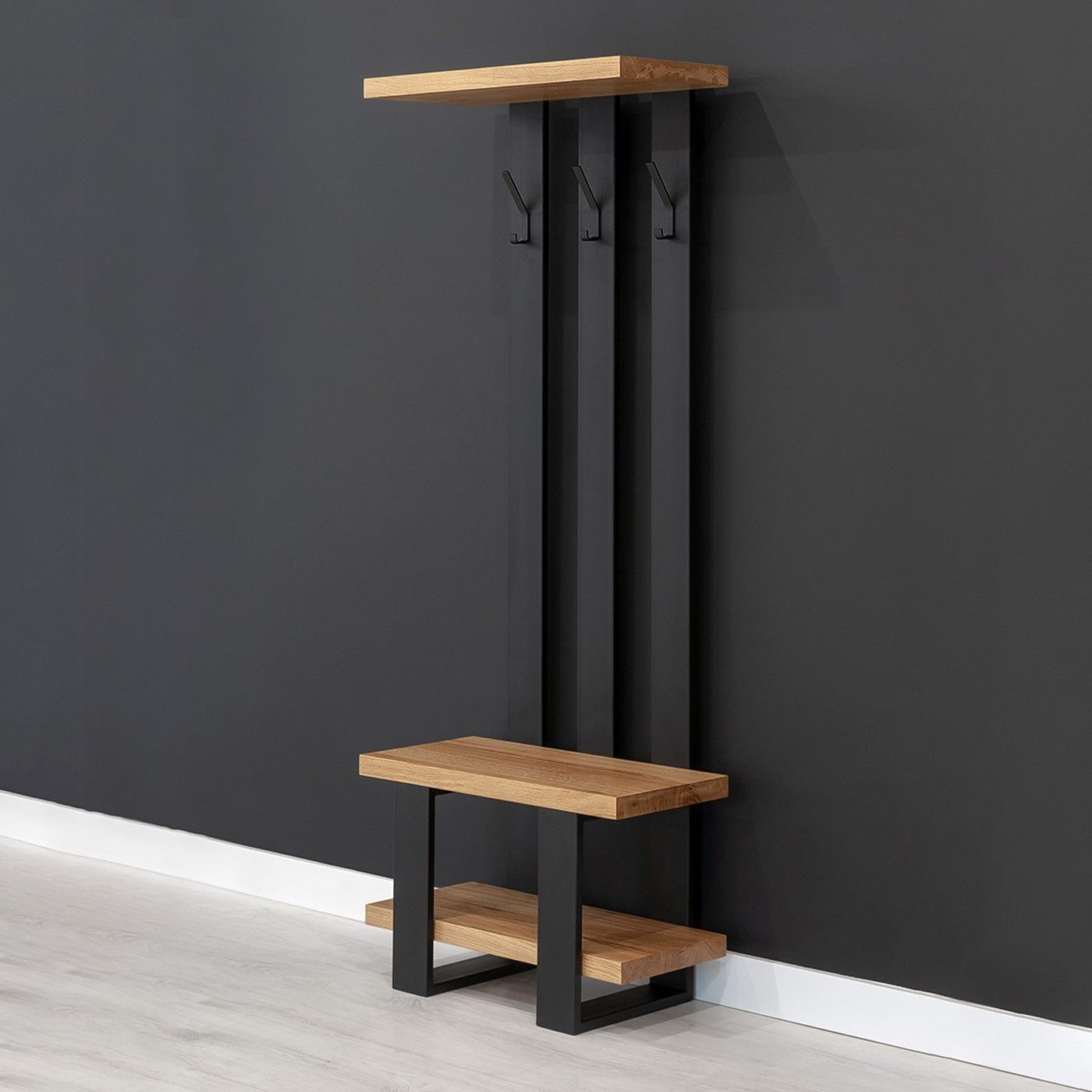 Industrieller Mount-Garderobenständer aus massivem Holz