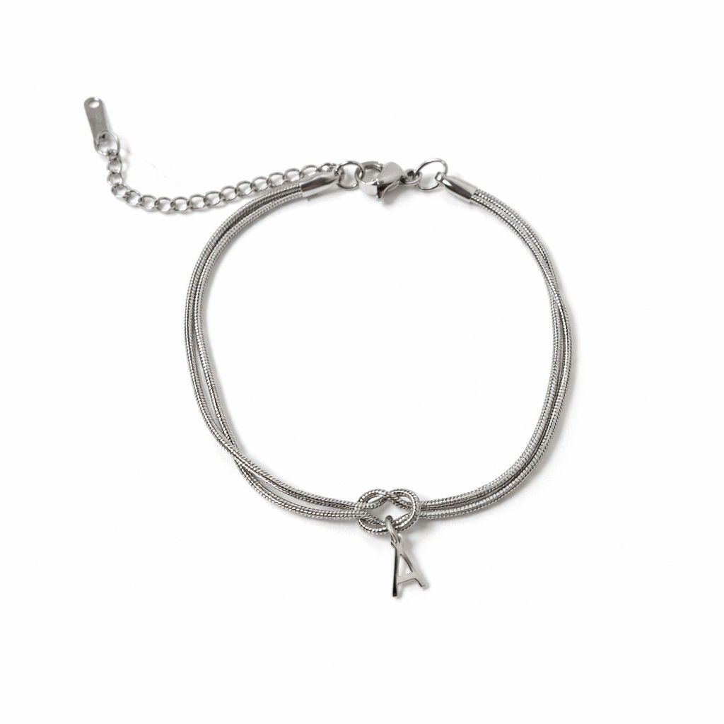 Persönlich. Zeitlos. Alltagstauglich. Dieses Initialen-Armband aus hochwertigem Edelstahl vereint minimalistisches Design mit emotionaler Bedeutung. Der feine Knoten mit Buchstaben-Anhänger steht für Verbundenheit, Individualität und Stil. Länge 17+5 cm