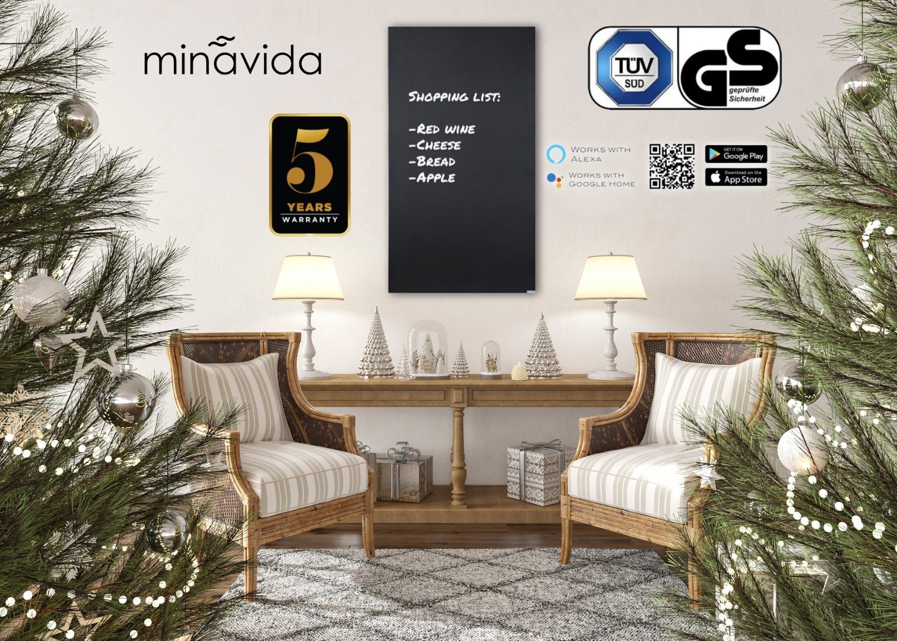 Infrarot-Tafelheizung Infrarot Heizkörper IC900Plus Black inkl. Thermostat WiFi