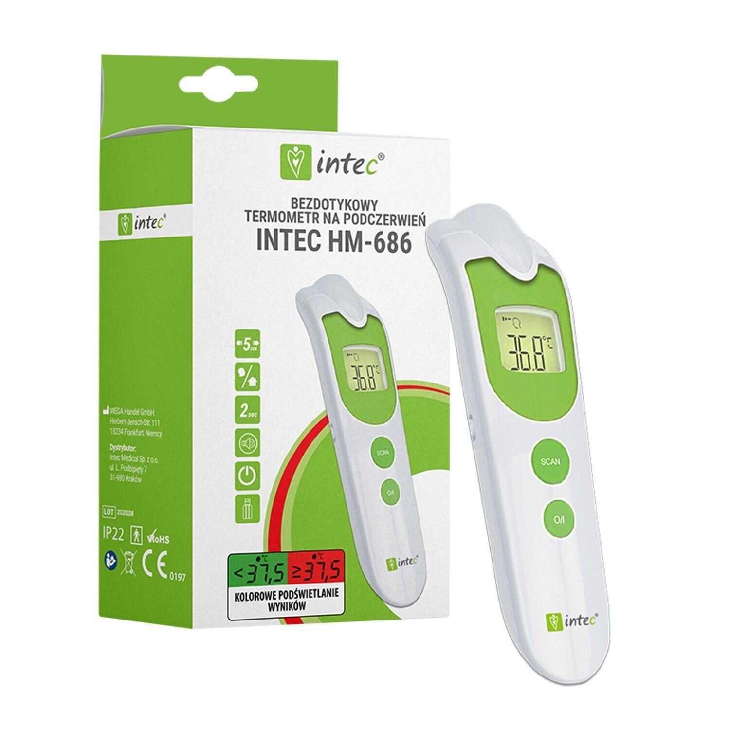 Intec Infrarot-Thermometer Thermometer Temperaturmesser Kontaktlos mit LCD-Anzeige