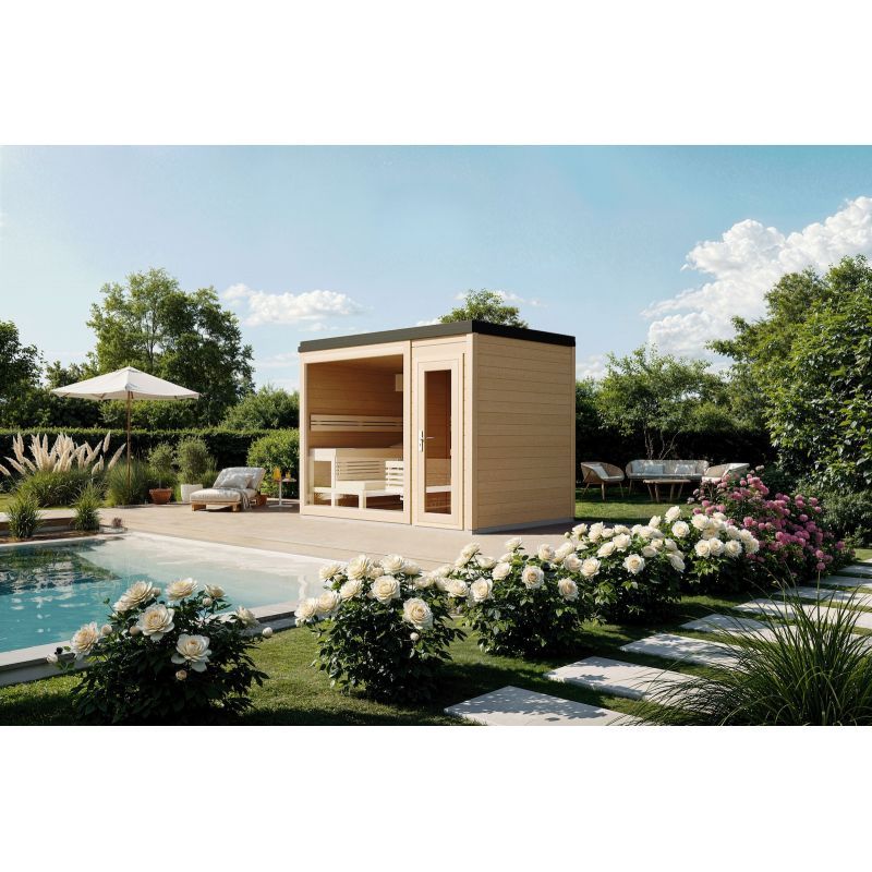 Infraworld Gartensauna CASA 2 Außensauna Massiv mit Vorraum 215,6 x 328,6 cm