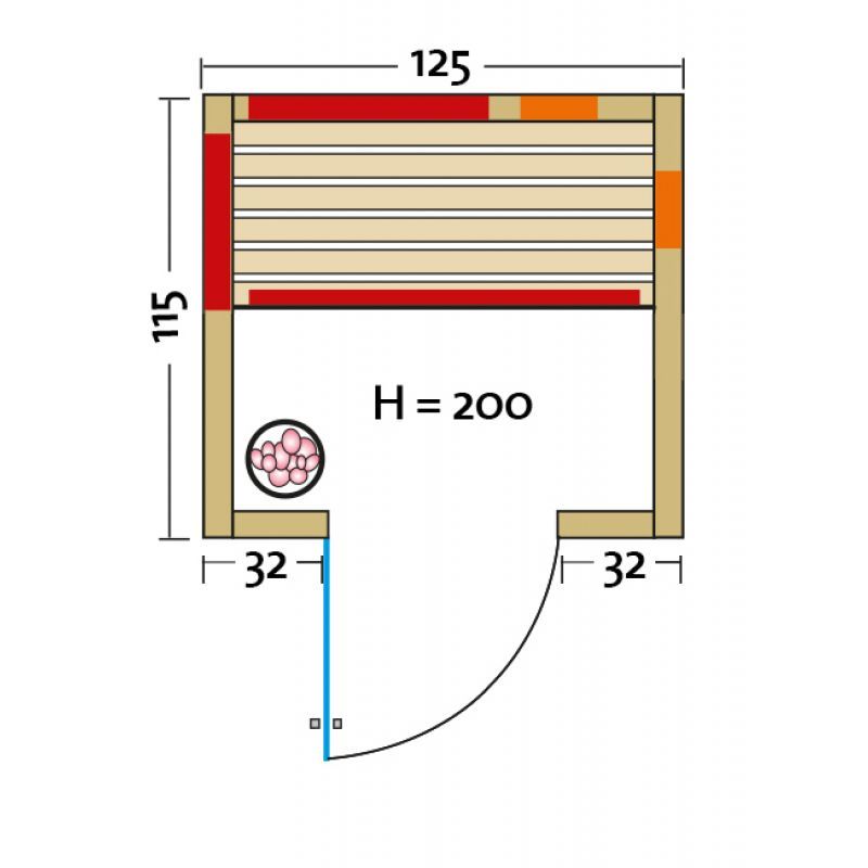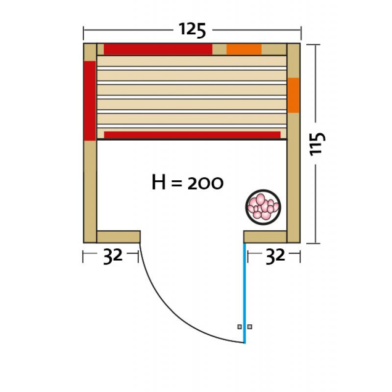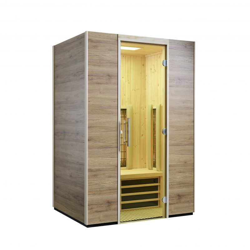 Infraworld Infrarotkabine TrioSol Basel 125 Eiche Dekor 125x115cm mit 2 ABC-Strahler