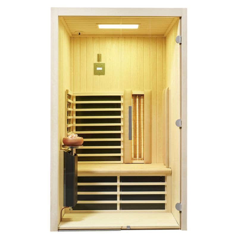 Infraworld Infrarotkabine TrioSol Glas 125 VG Tanne Flächenheizung/ABC-Strahler/Salz