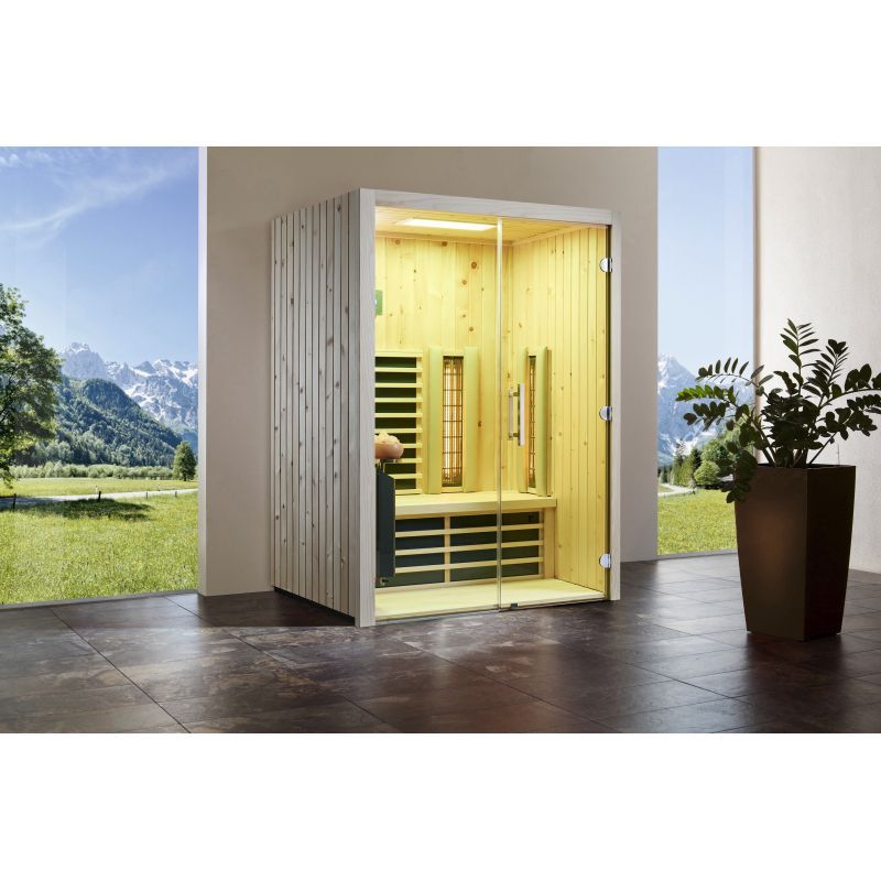 Infraworld Infrarotkabine TrioSol Glas 145 Zirbe VG 145x112 cm mit 2 ABC-Strahler Sa