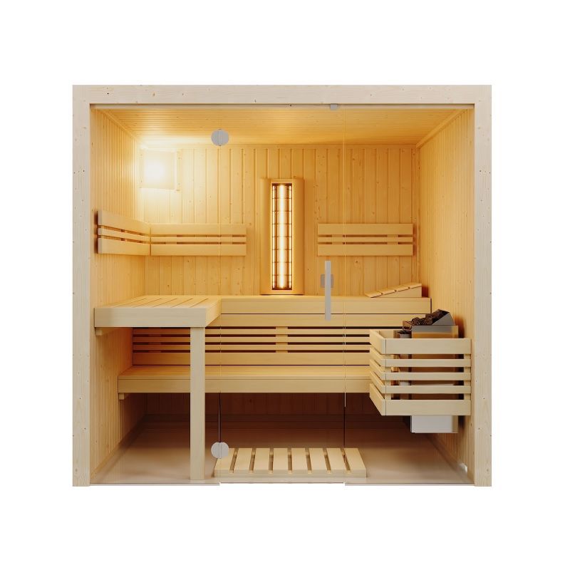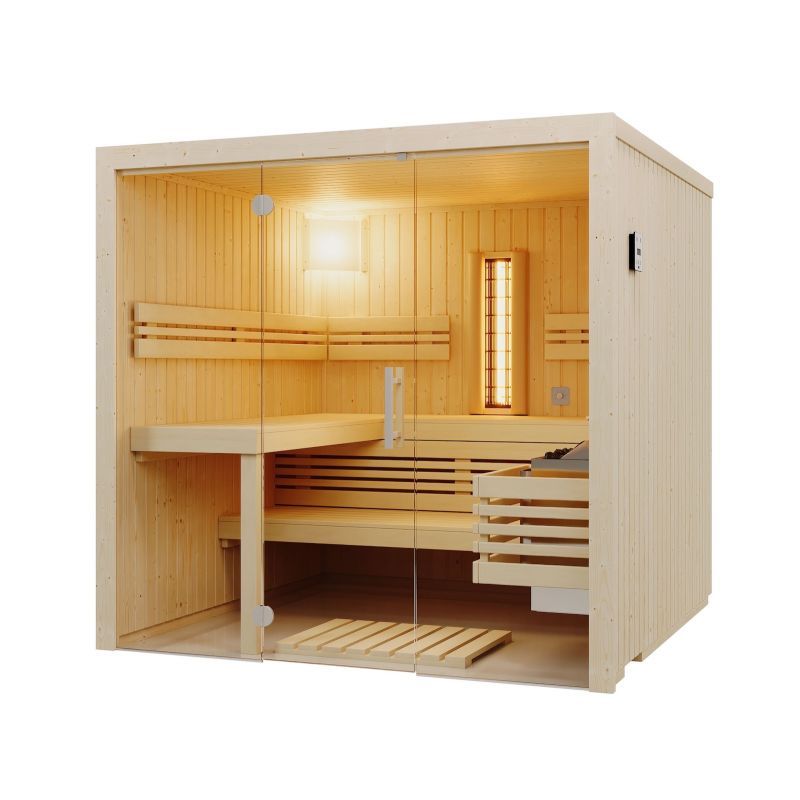 Infraworld Sauna Panorama Complete Fichte 210x162x203cm mit ABC-Strahler Multifunkti