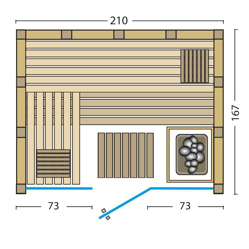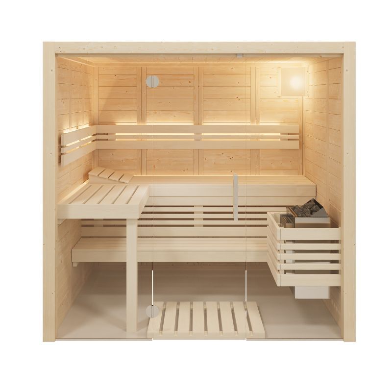 Infraworld Solido Glas Massivholzsauna aus nordischer Fichte 210x167x202cm