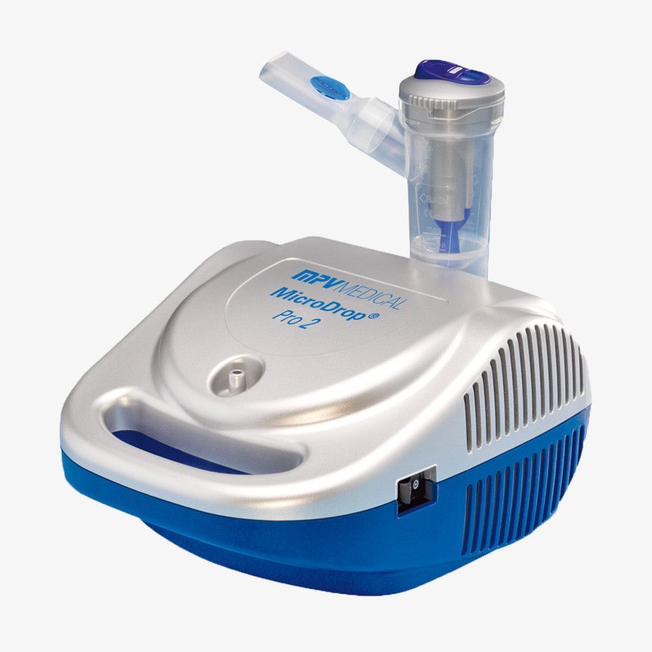 Der MicroDrop® Pro2 ist ein druckluftbetriebenes Inhalationsgerät (Düsen-Vernebler-System) für die Behandlung von Atemwegserkrankungen. Das Teilchenspektrum von 2,76 µm erlaubt eine hohe Deposition in den unteren Bereichen der Lunge, vor allem von den kleinen Bronchien bis zu den Alveolen