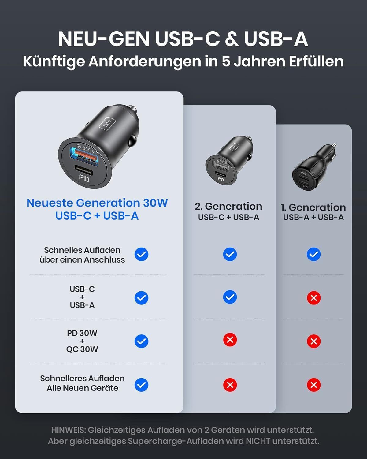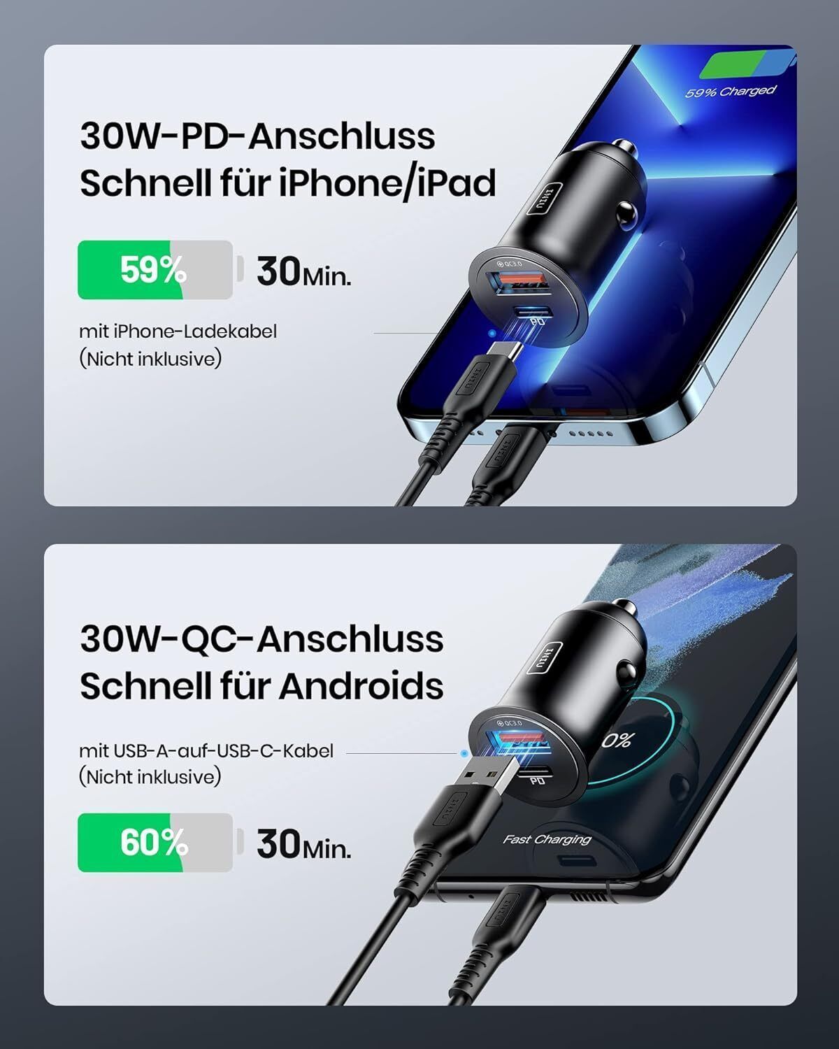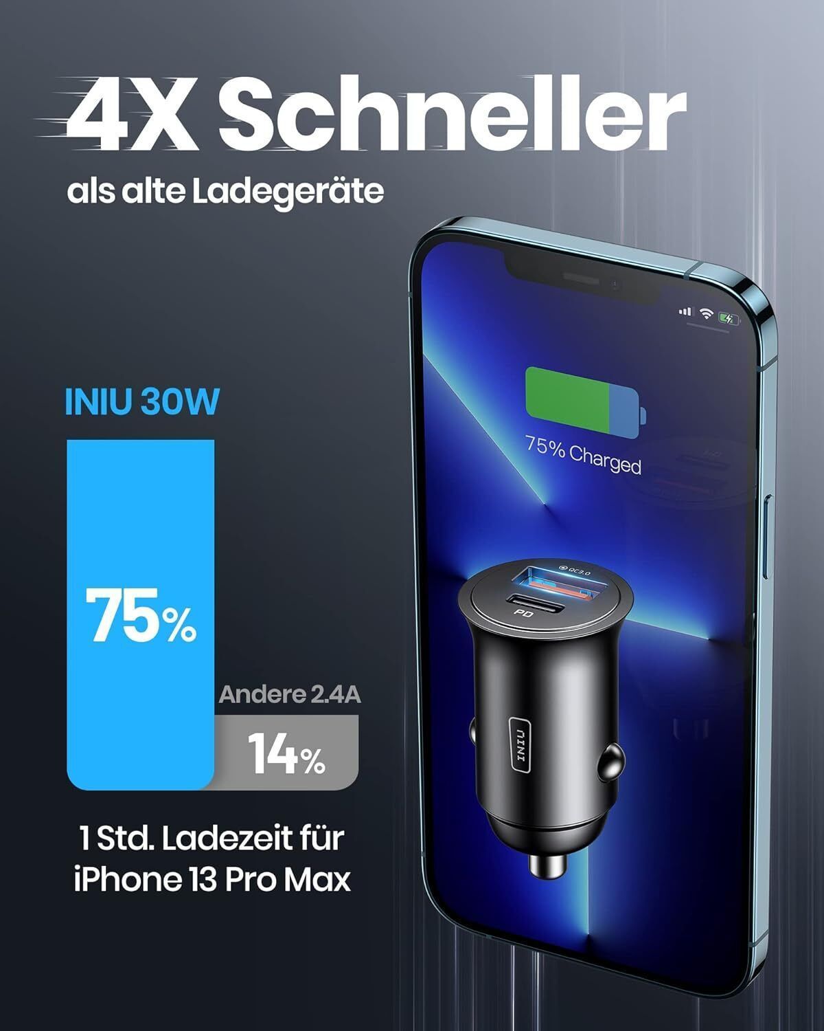 INIU Zigarettenanzénder Auto Pkw USB Adapter 30 Watt Steckdose 5A Schnellladung