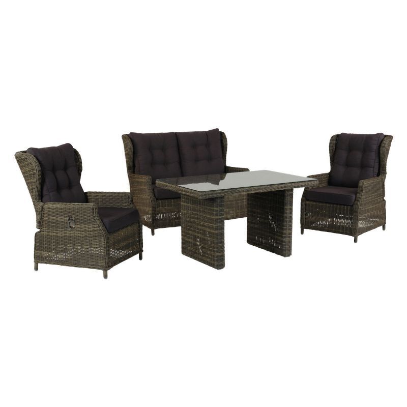 Inko 4-teilige Lounge-Sitzgruppe Leona Rattanoptik mit Tisch 120x83 cm dark olive
