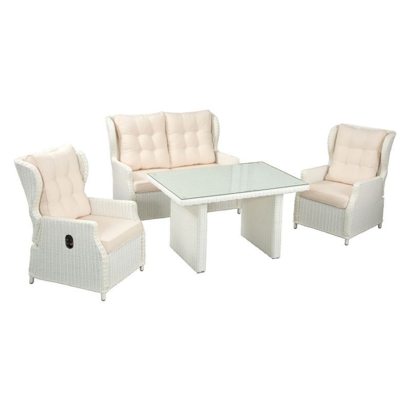 Inko 4-teilige Lounge-Sitzgruppe Leona Rattanoptik mit Tisch 120x83 cm weiß Tischpla