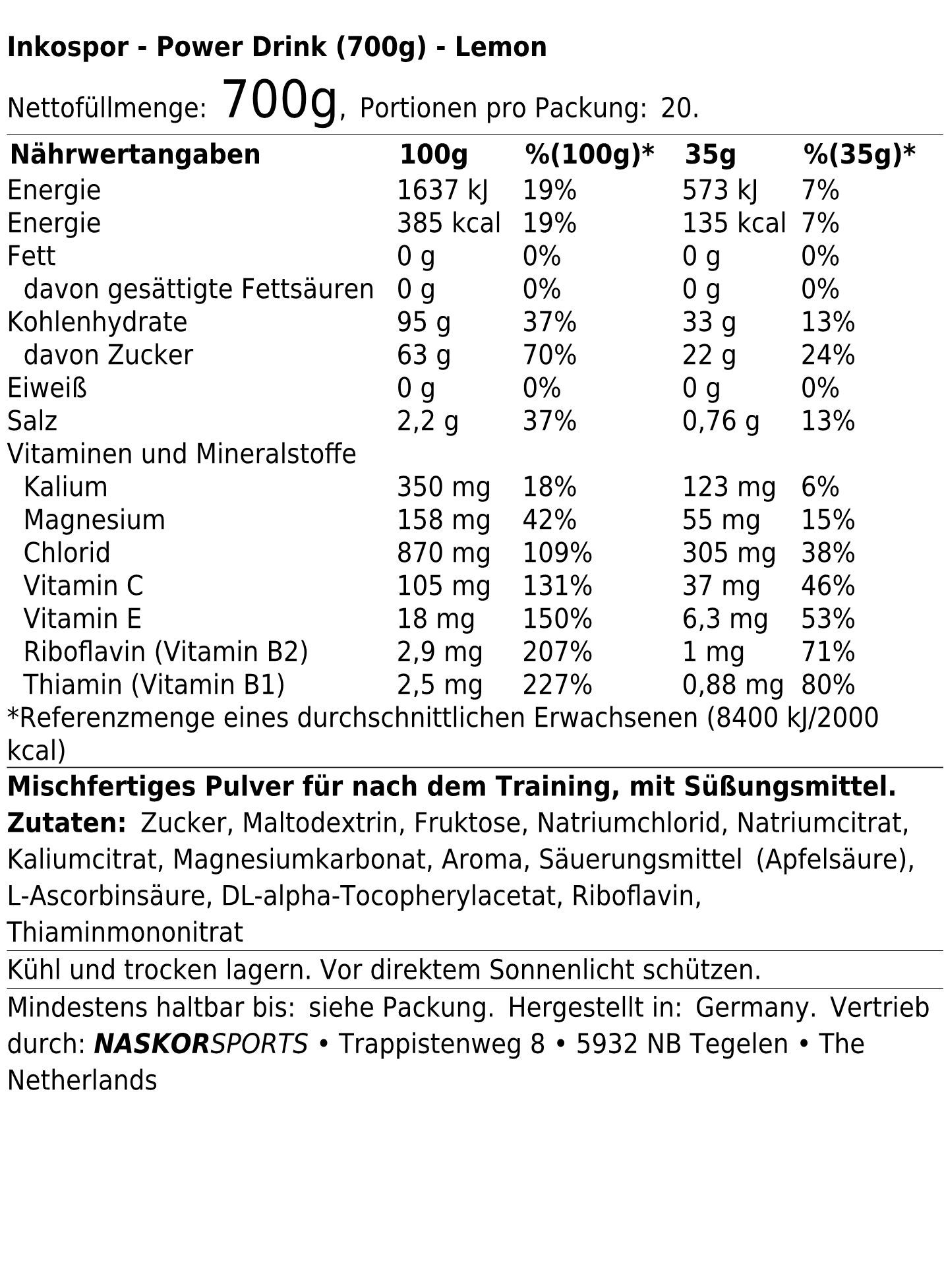 Inkospor Inkospor Power Drink (700g) Lemon