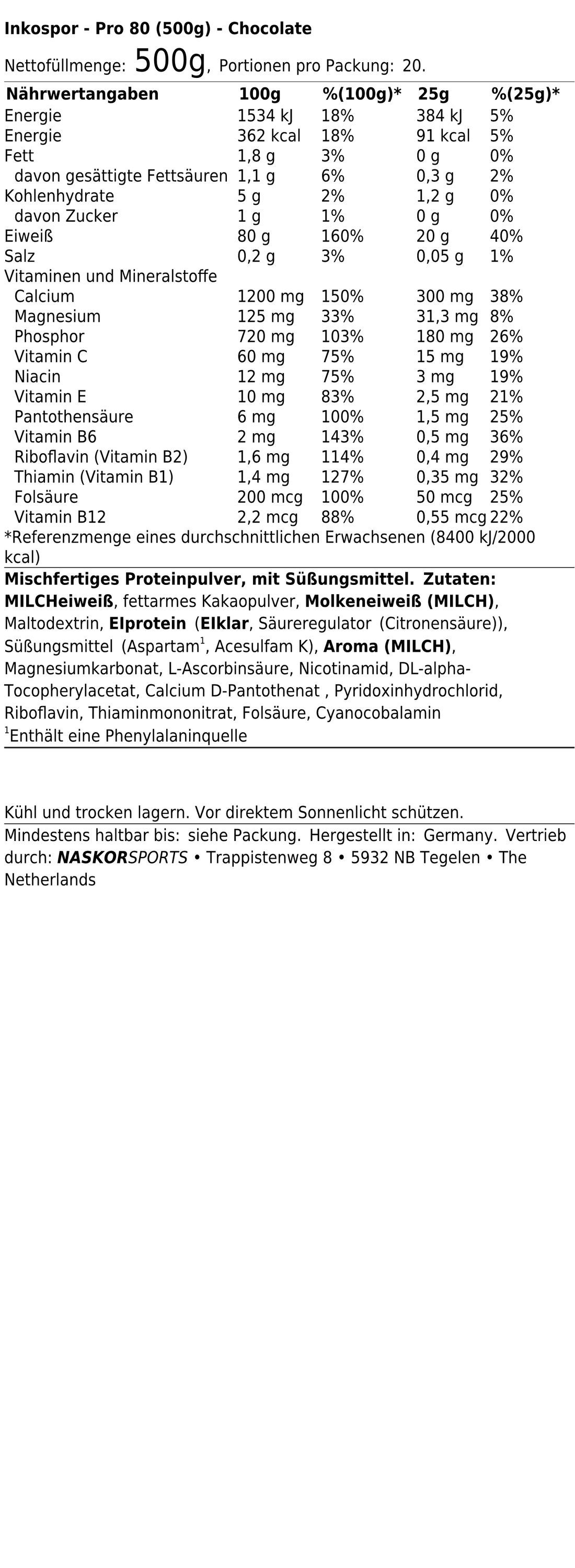 Inkospor Inkospor Pro 80 (500g) Chocolate