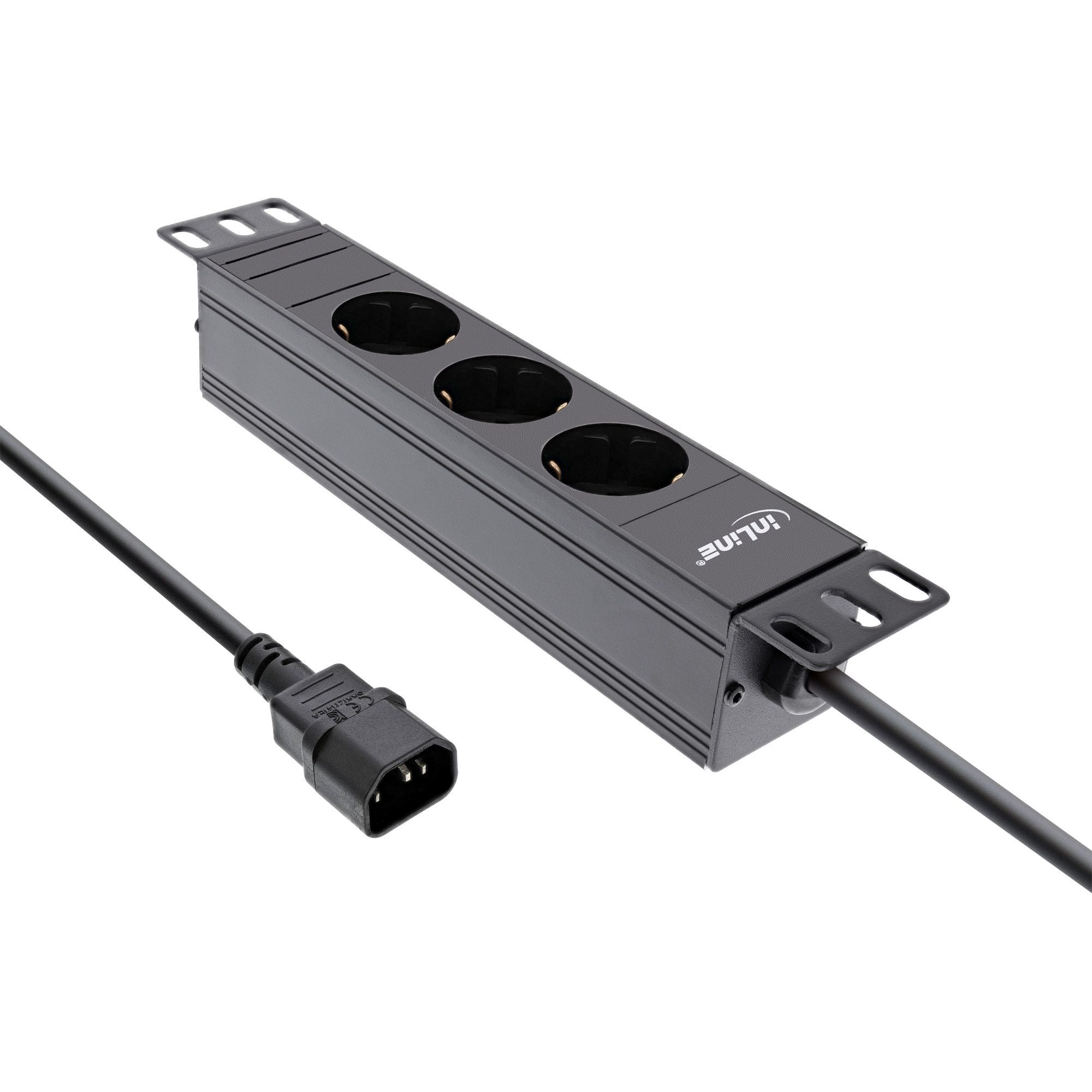 InLine® InLine® 10Zoll Steckdosenleiste, 3-fach Schutzkontakt, C14 Anschluss, ohne Schal