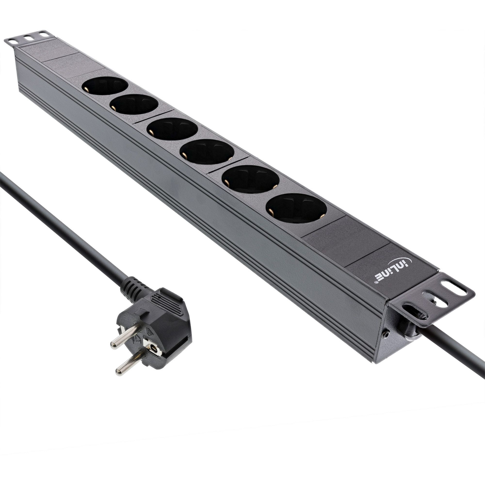 InLine® InLine® 19Zoll Steckdosenleiste, 6-fach Schutzkontakt, ohne Schalter, 2m, schwar